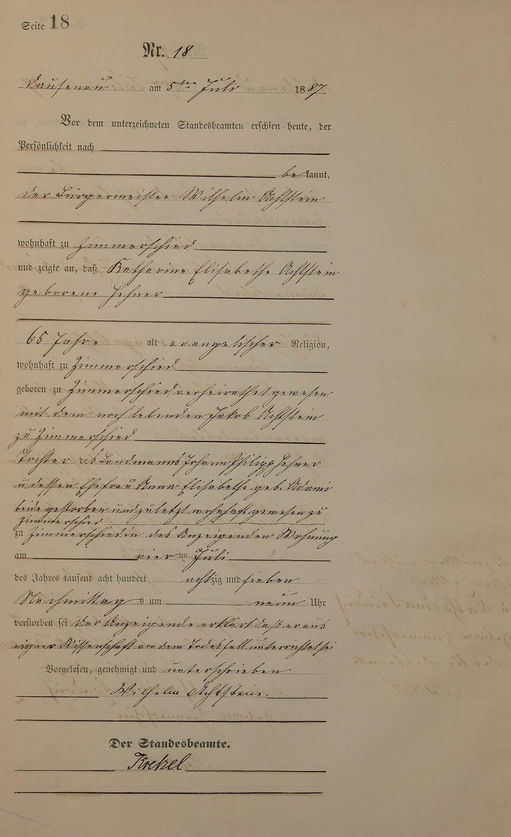 Sterberegister 1887