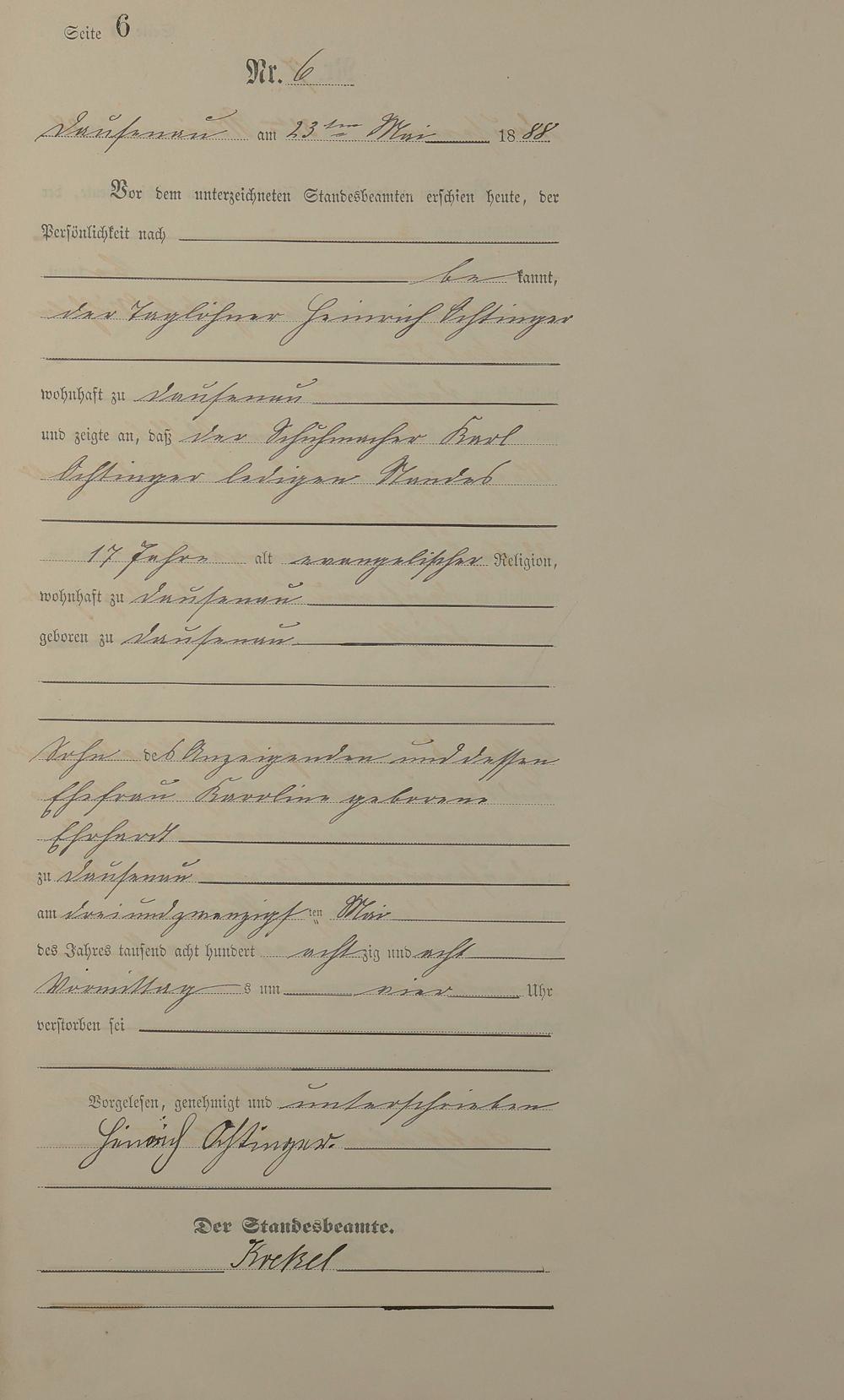Sterberegister 1888