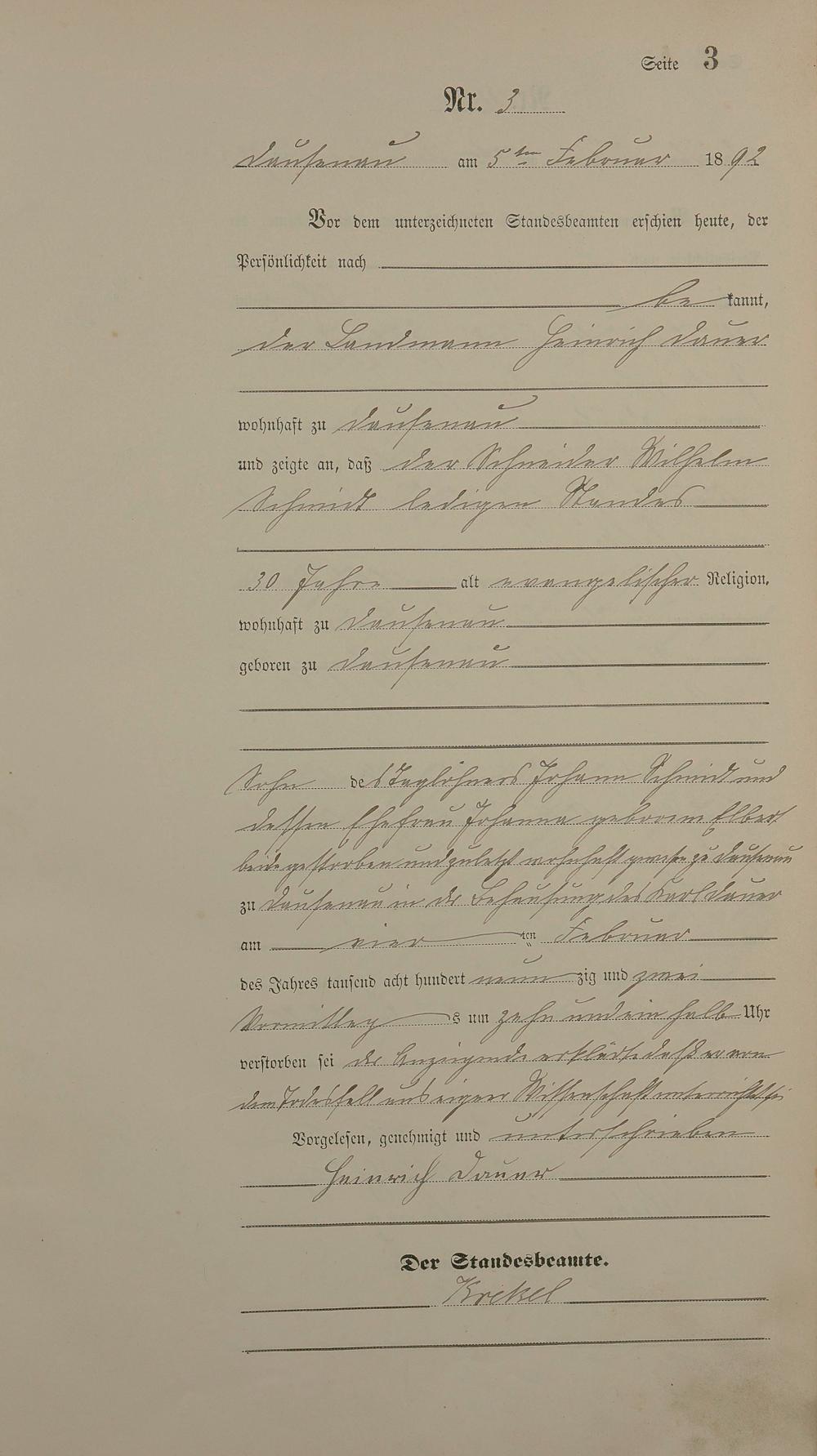 Sterberegister 1892