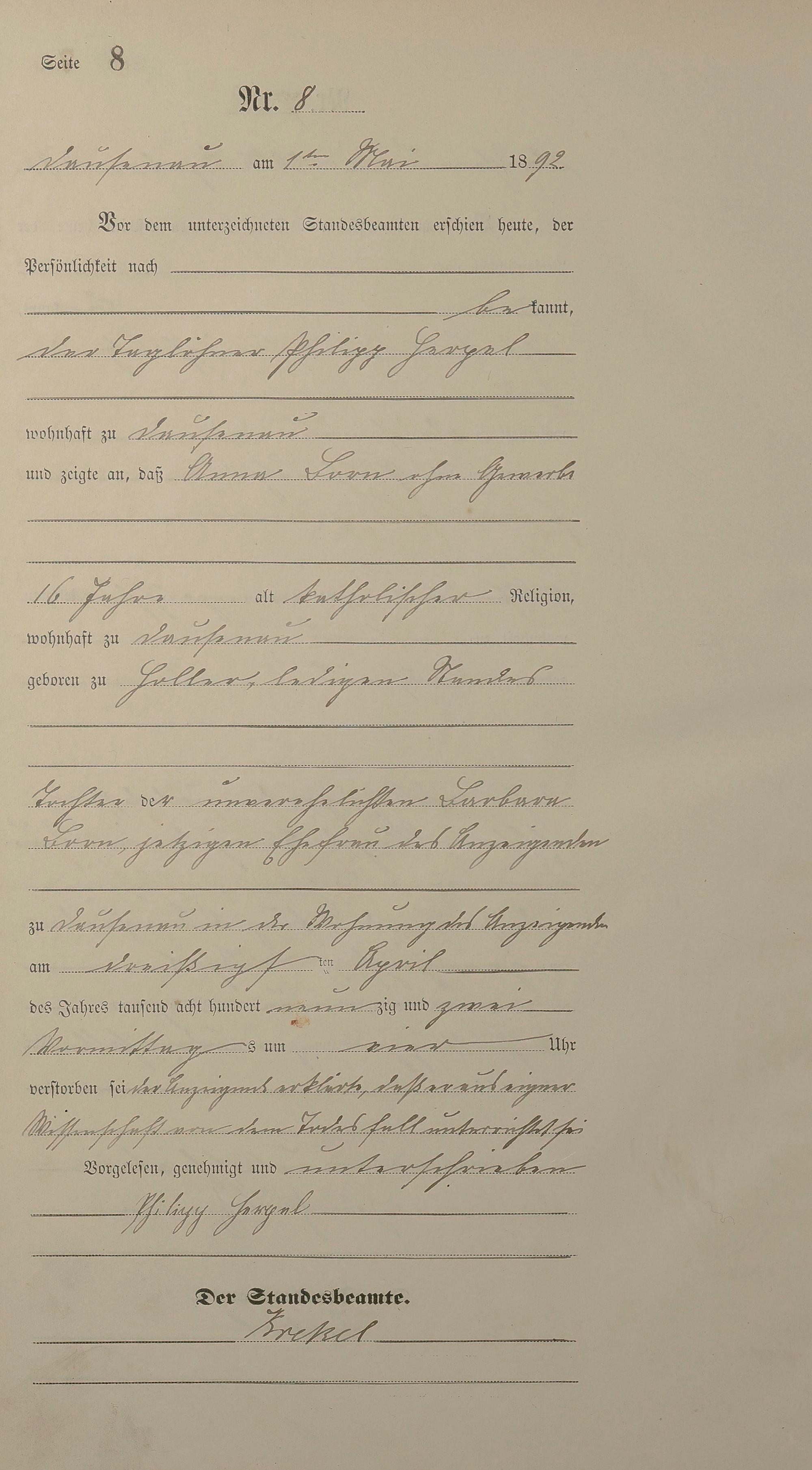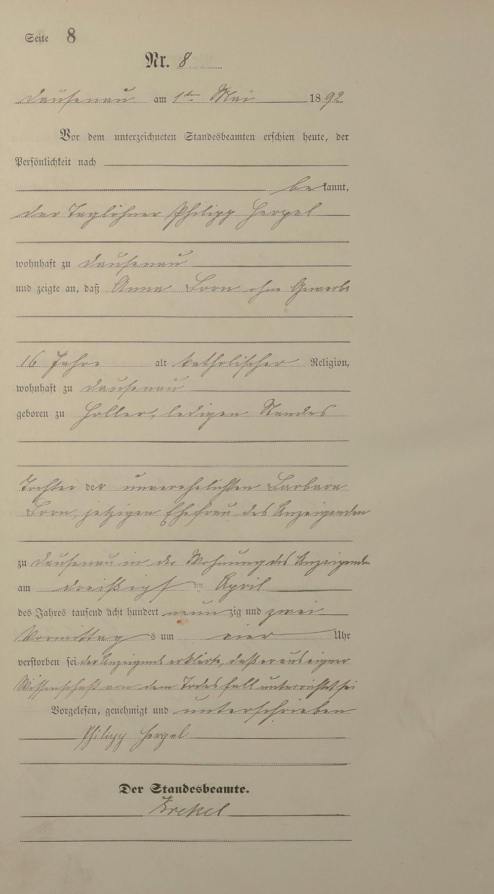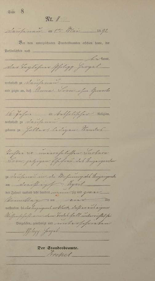 Sterberegister 1892