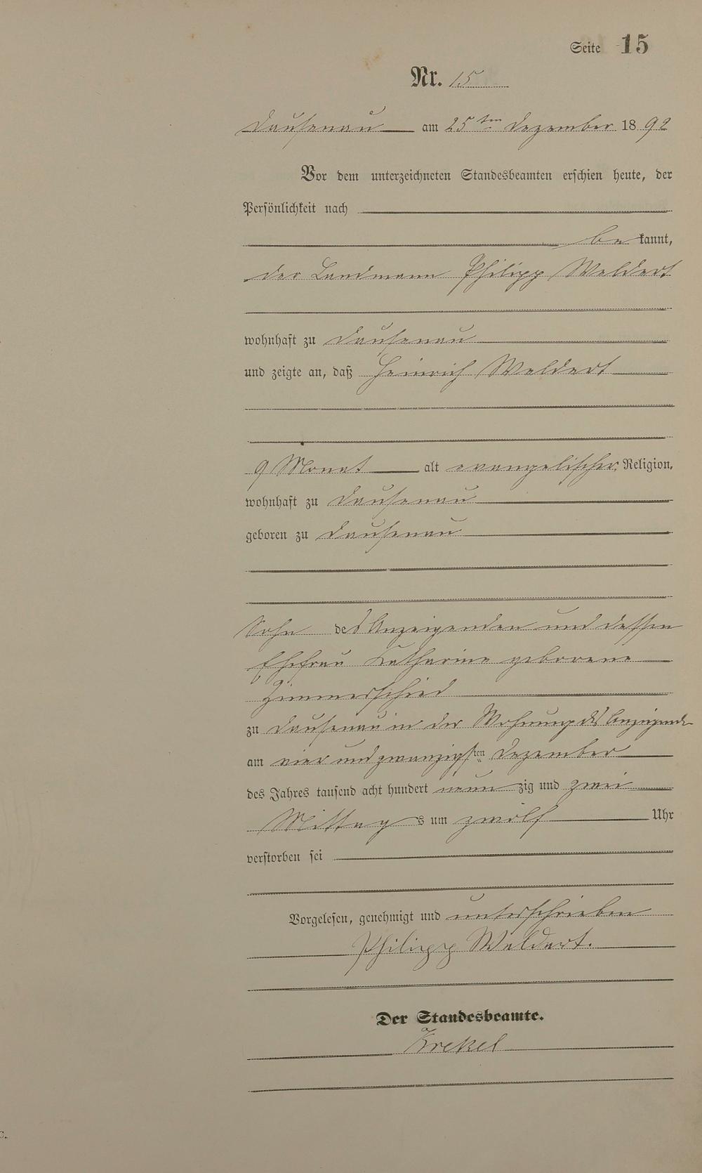 Sterberegister 1892