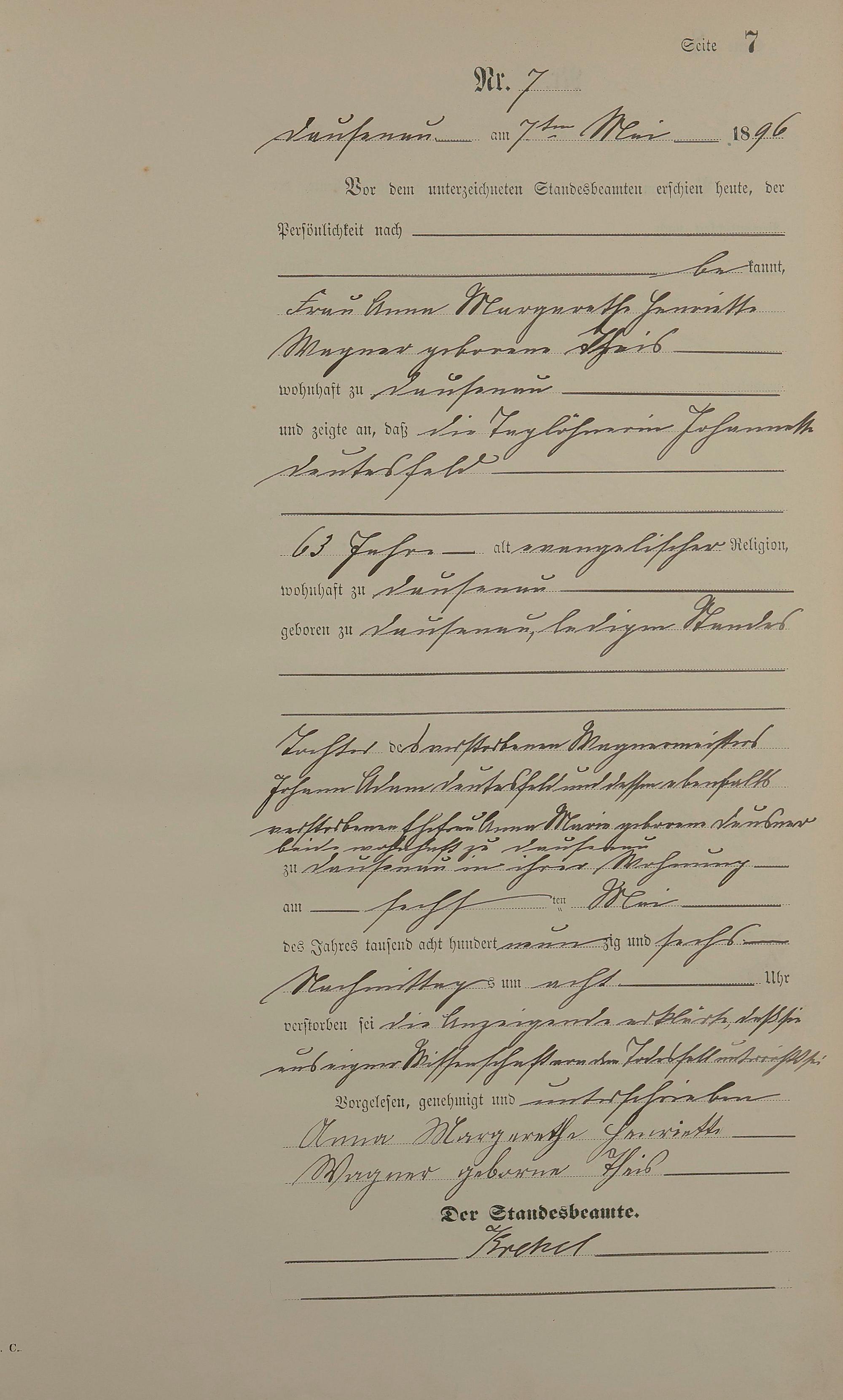 Sterberegister 1896