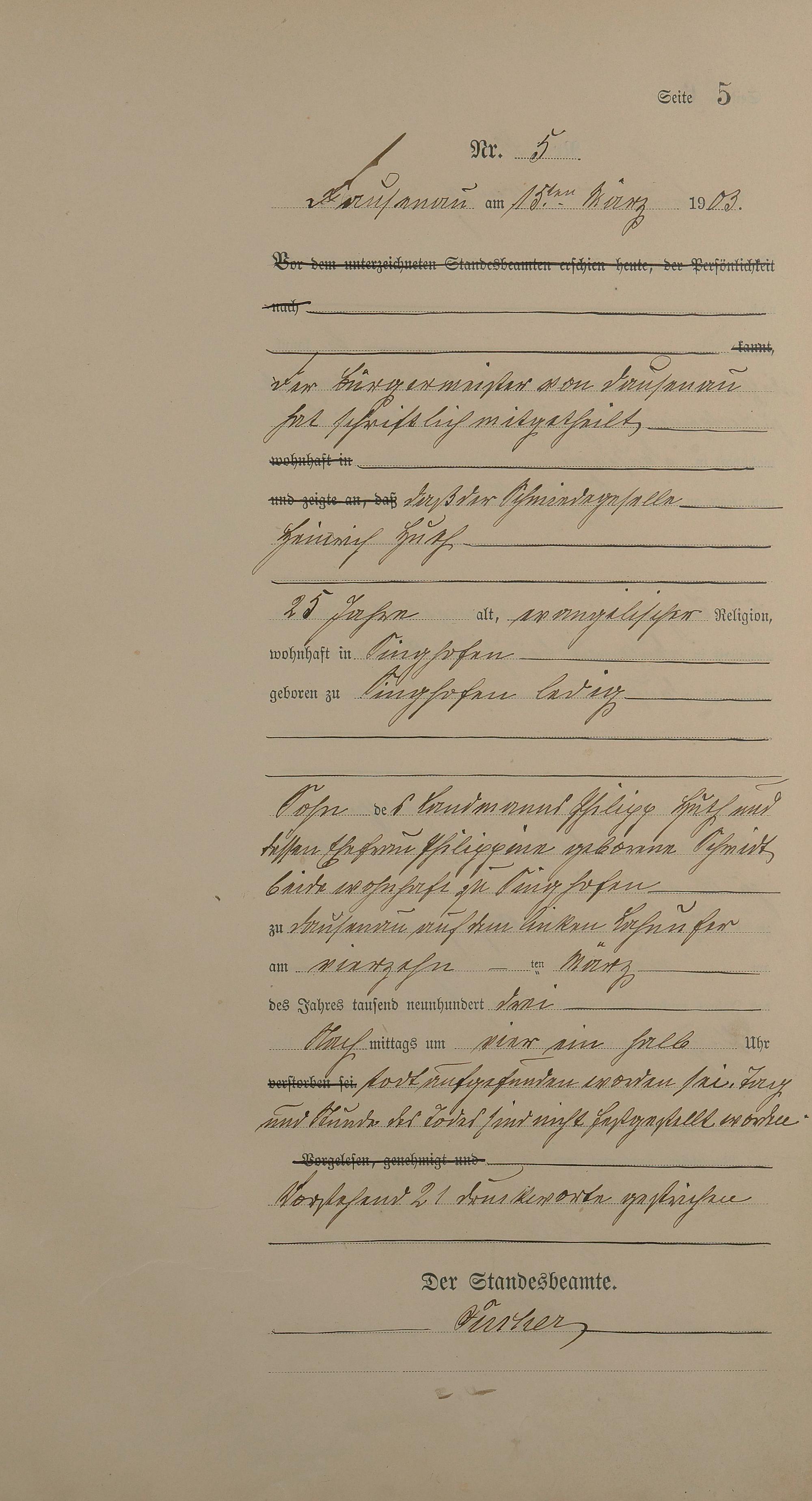 Sterberegister 1903