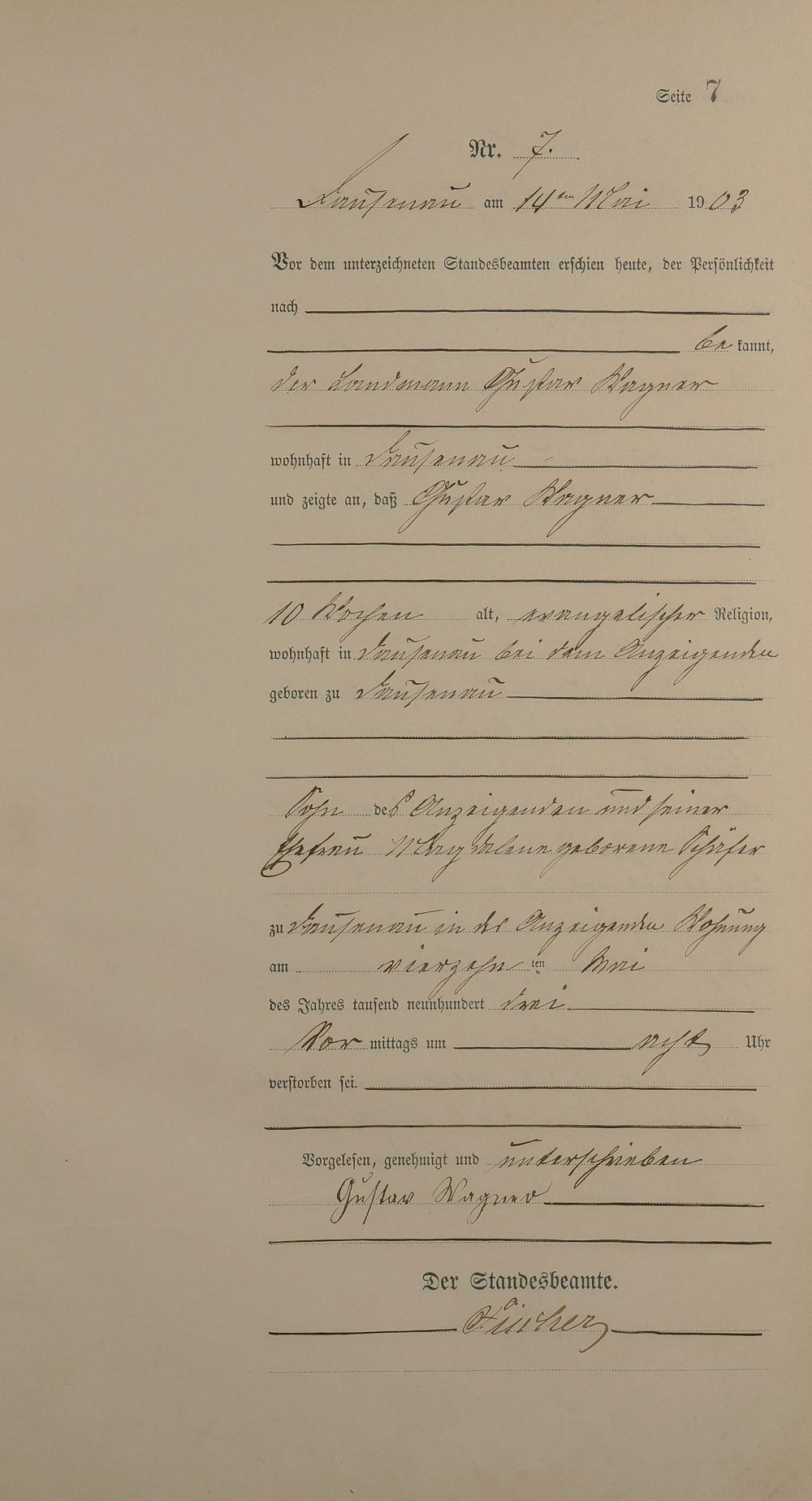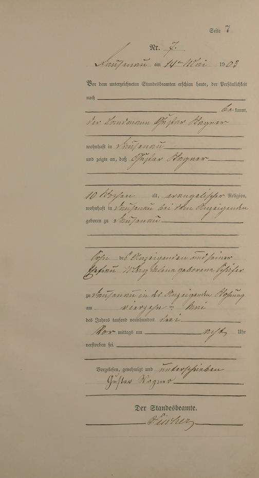 Sterberegister 1903