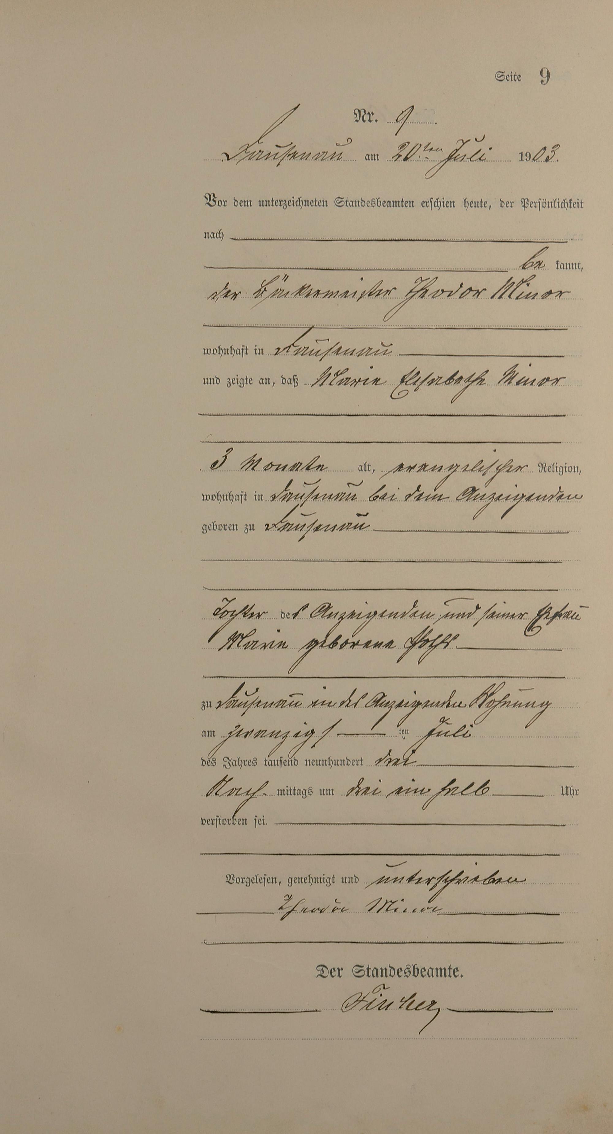 Sterberegister 1903