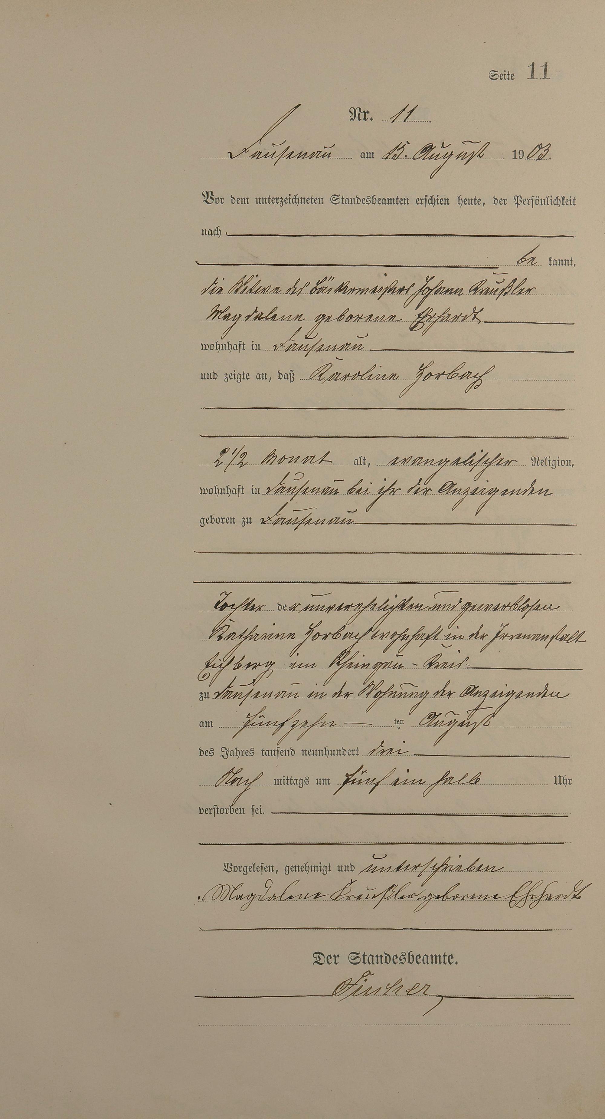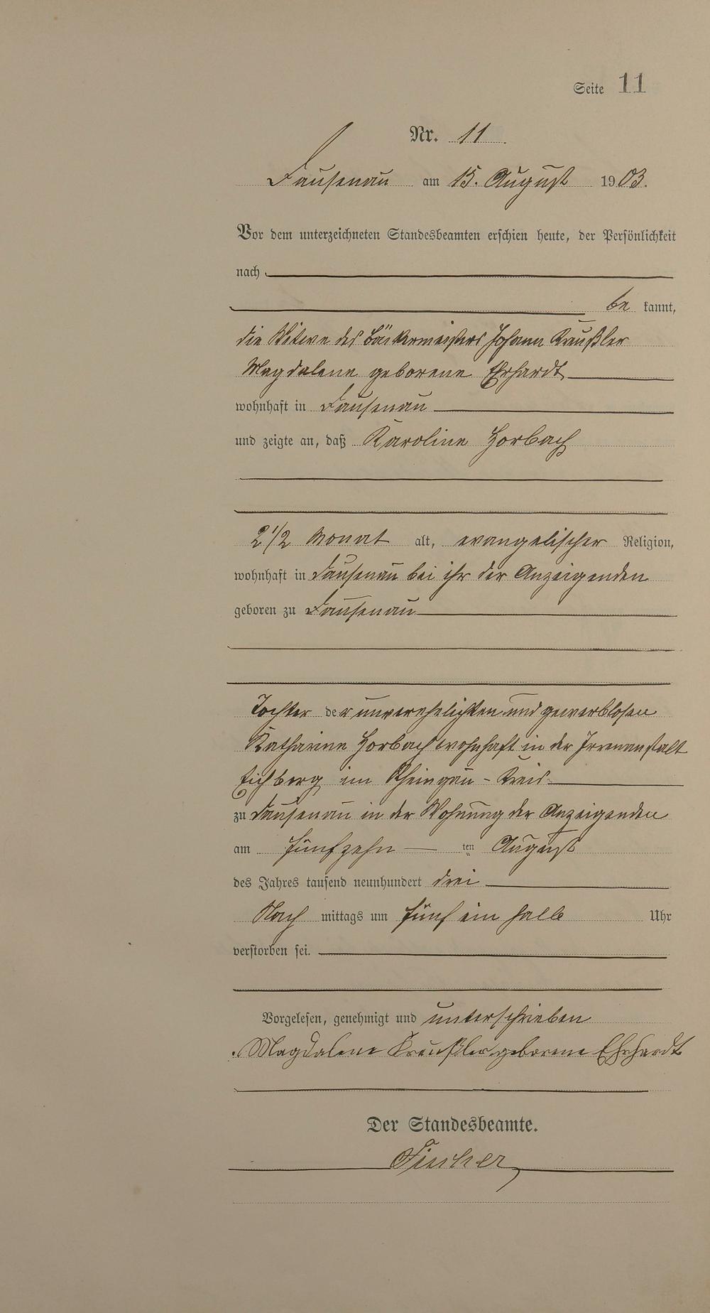 Sterberegister 1903