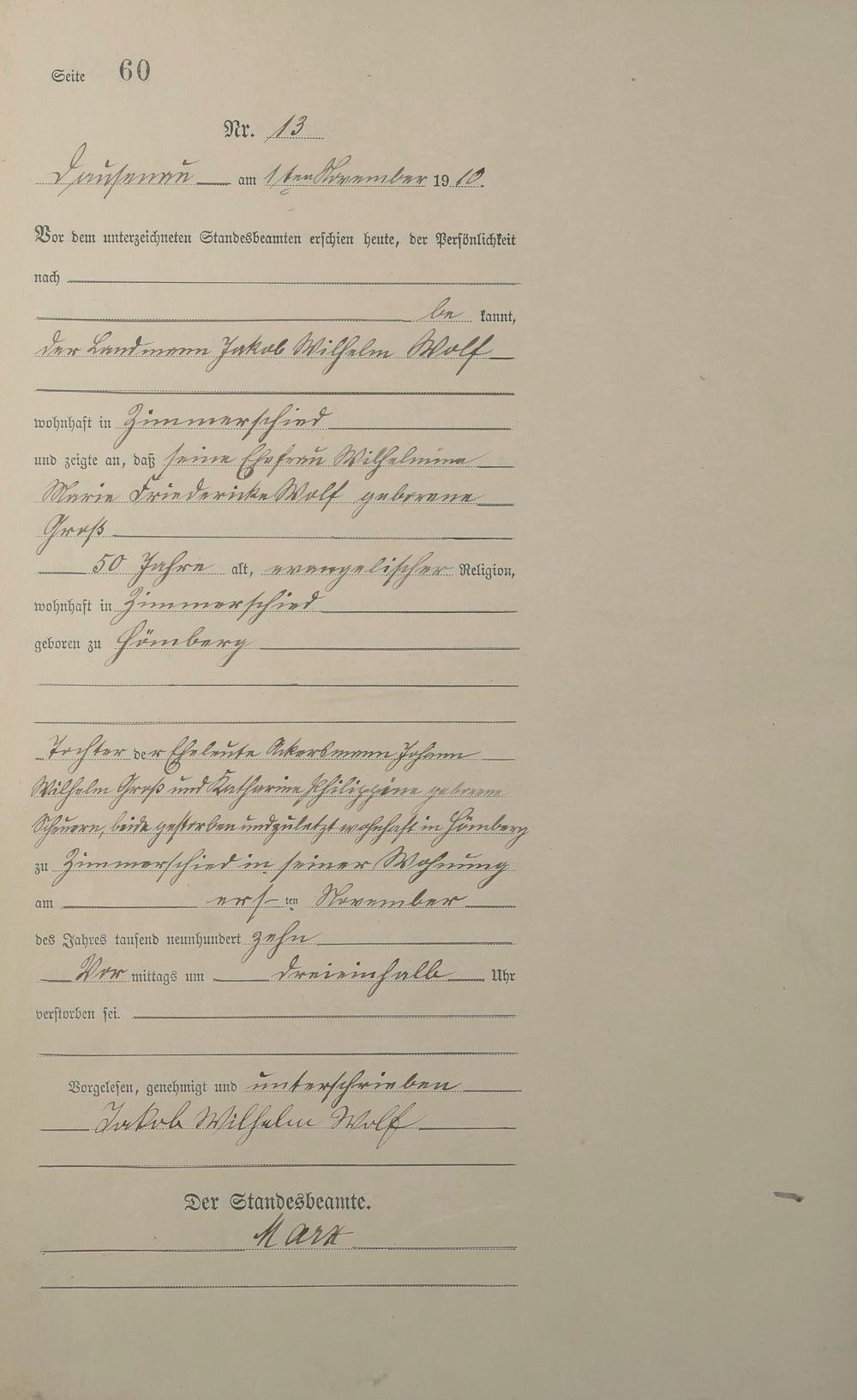 Sterberegister 1910