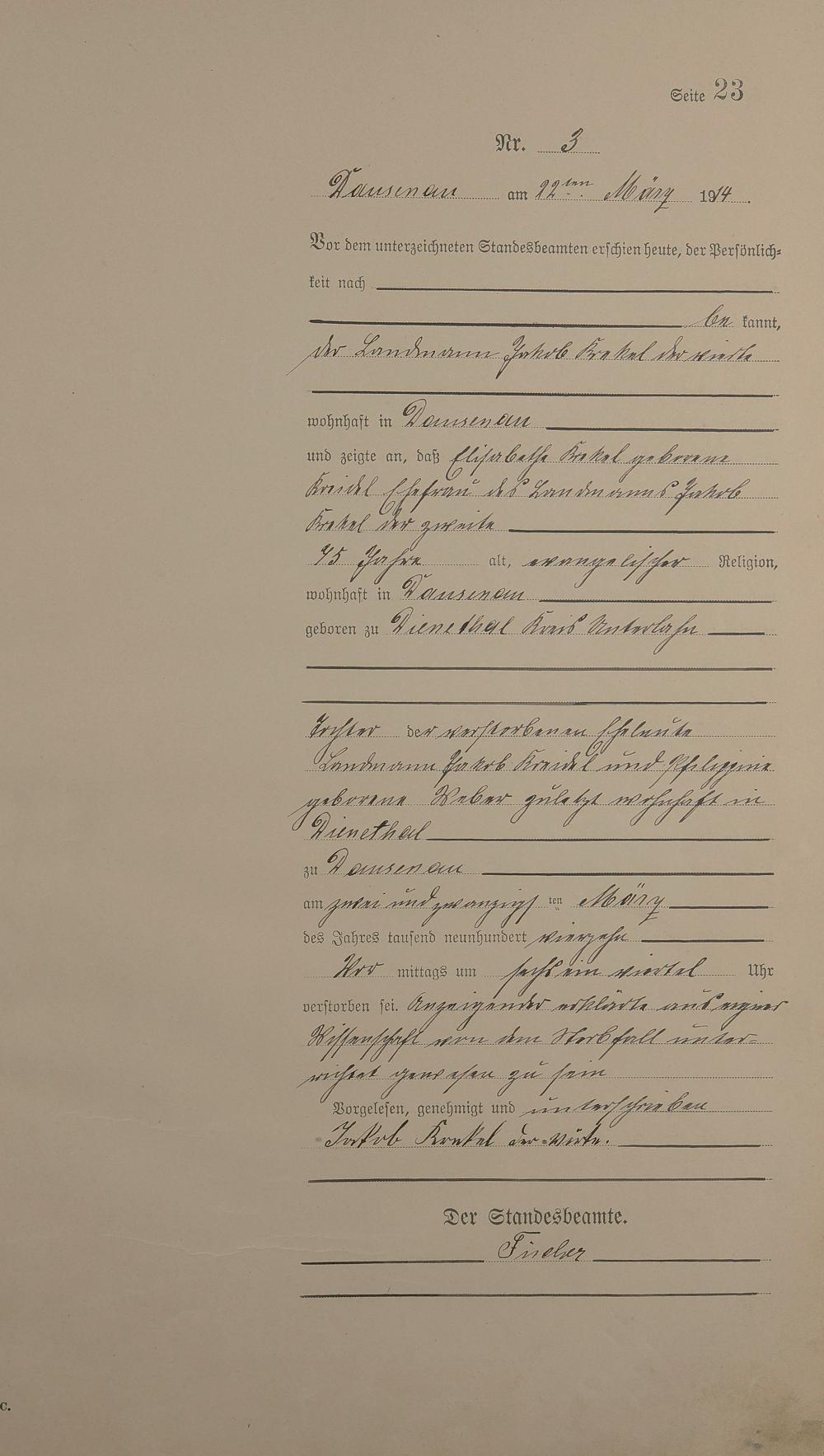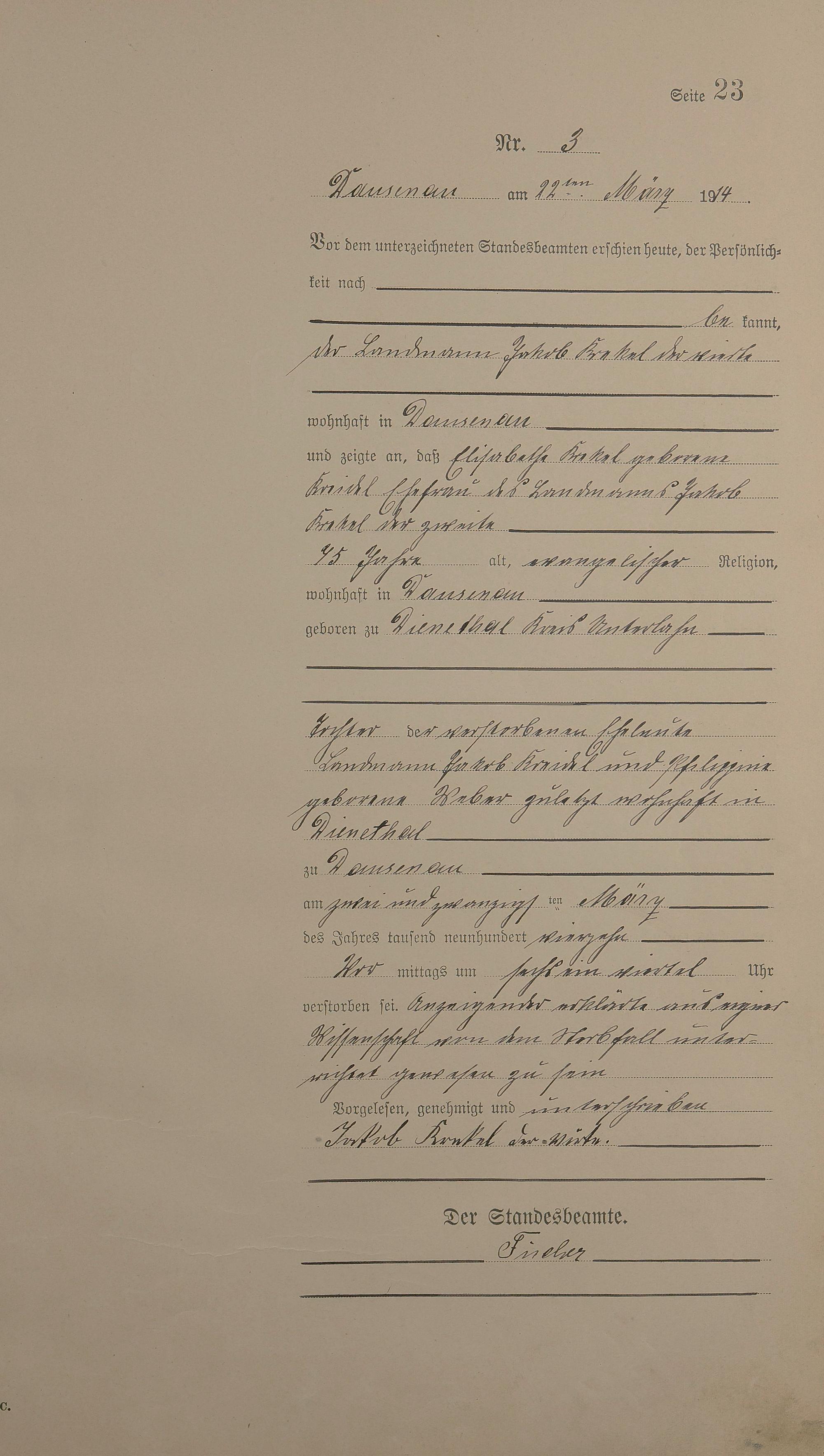 Sterberegister 1914