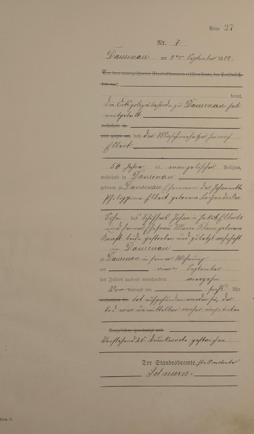 Sterberegister 1914