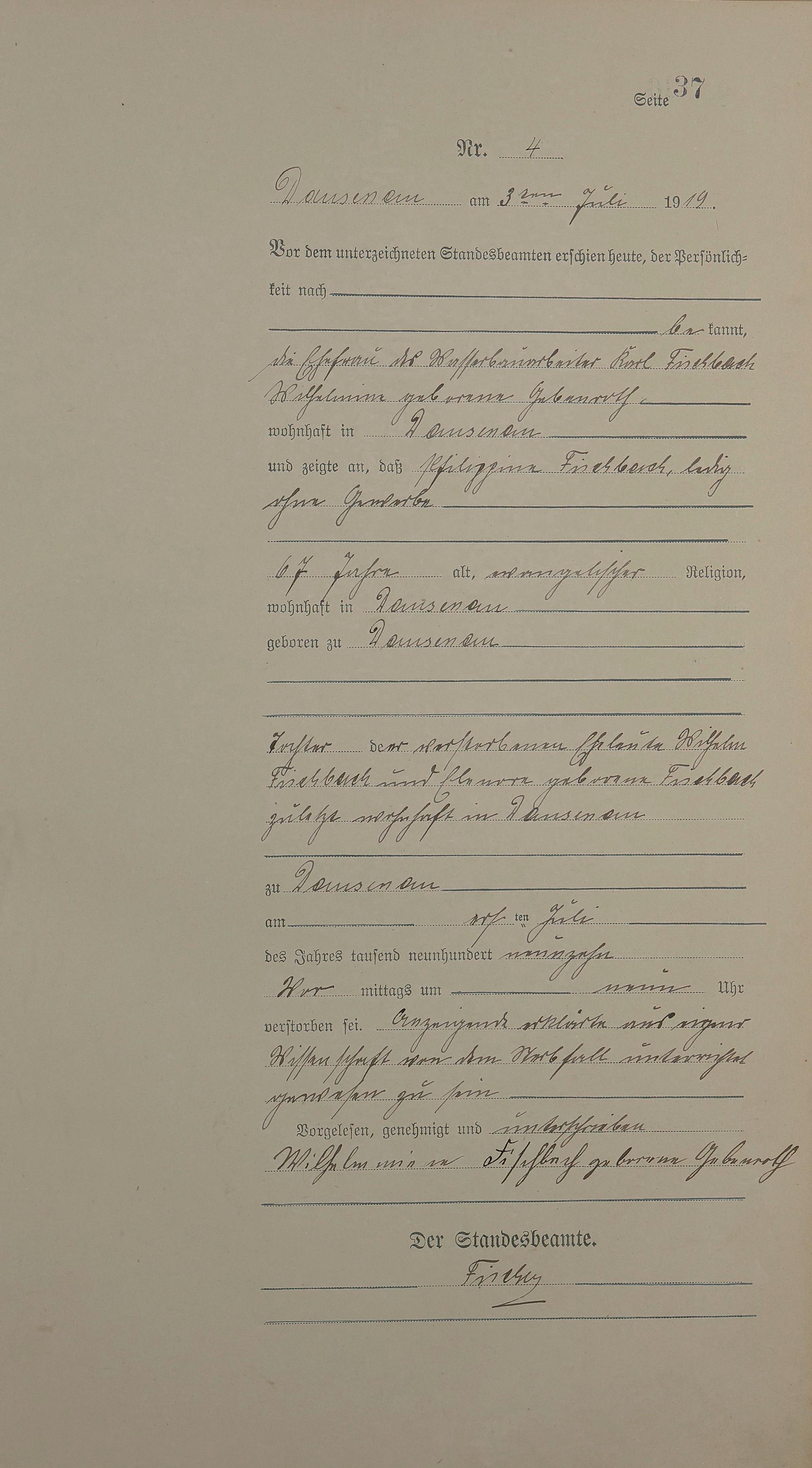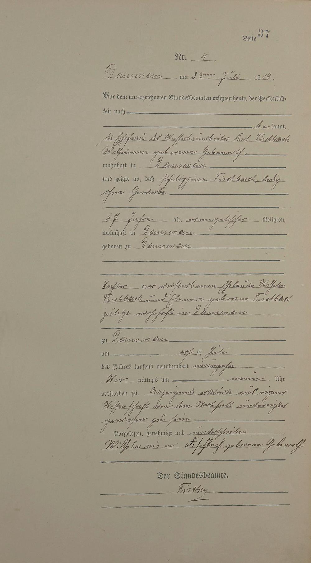 Sterberegister 1919