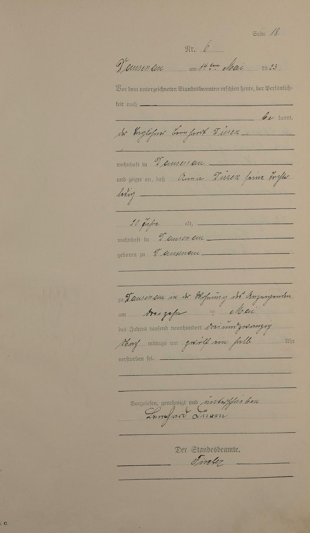 2012/23: Sterberegister 1923