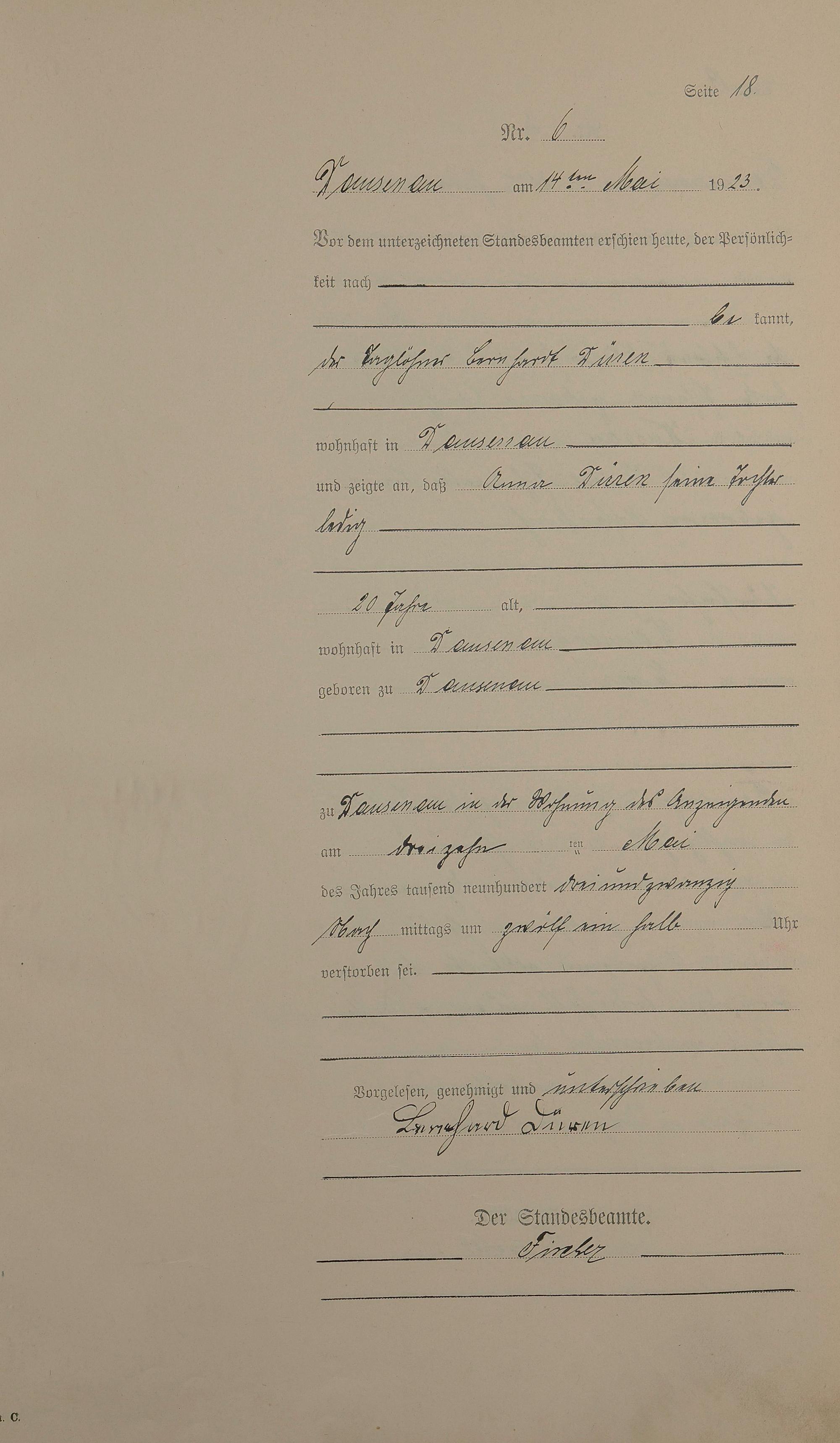 Sterberegister 1923