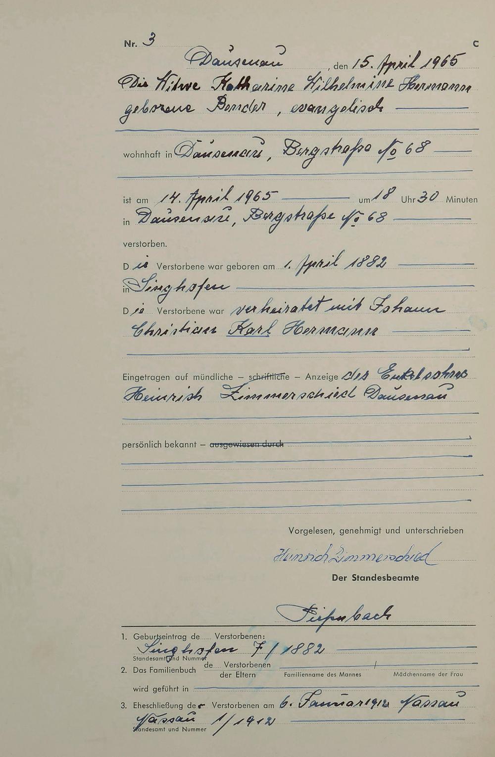 Sterberegister 1965