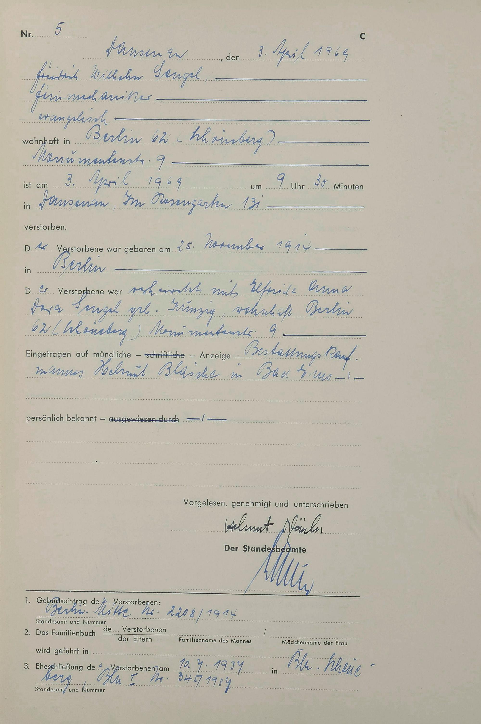 Sterberegister 1969