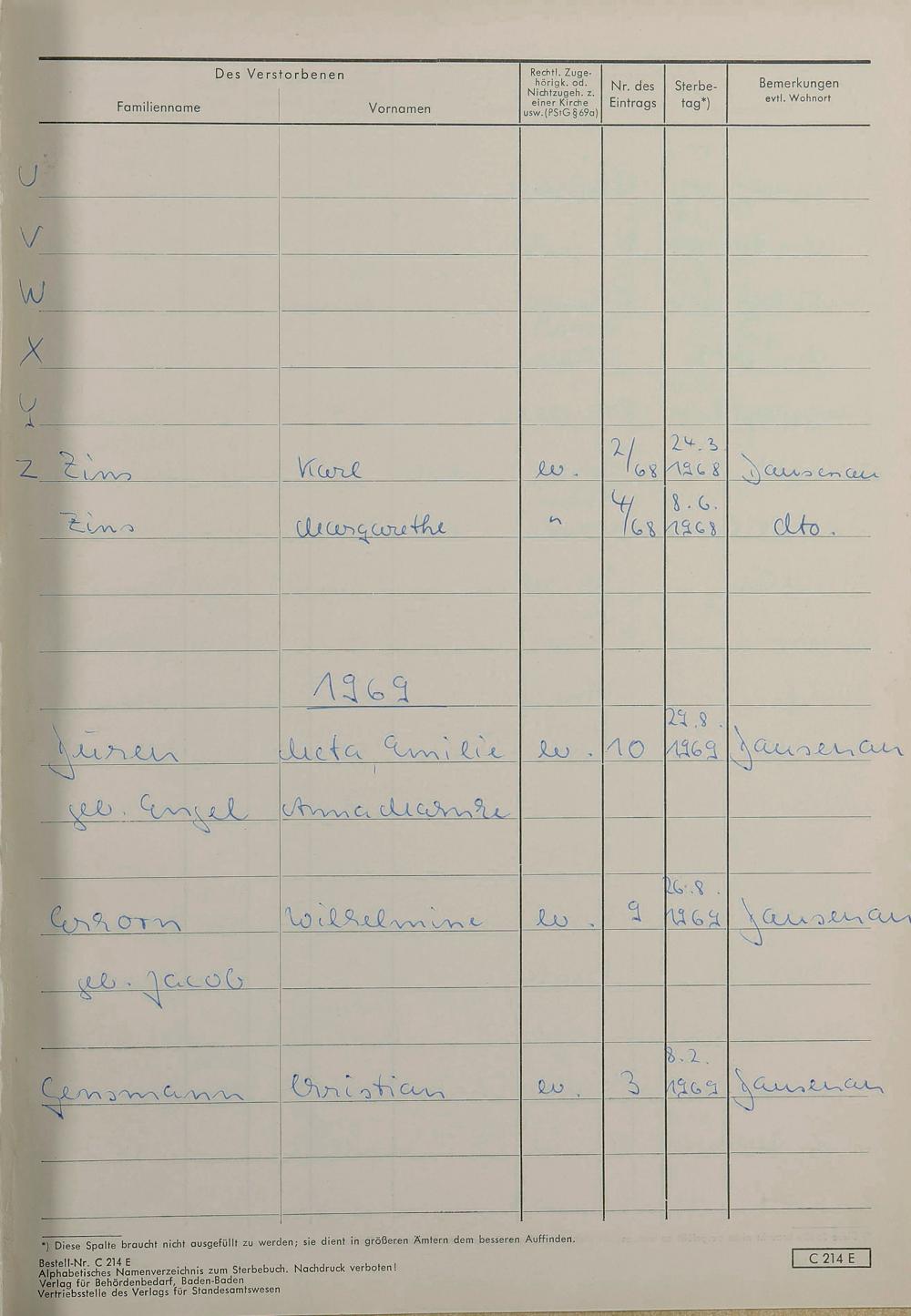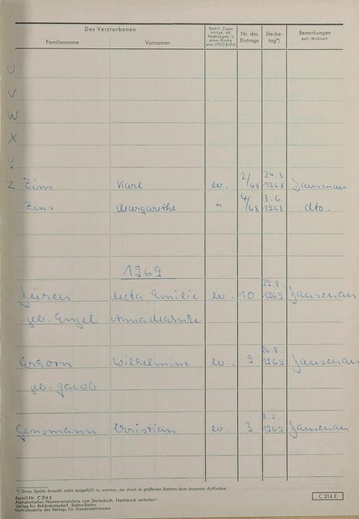 Sterberegister 1969