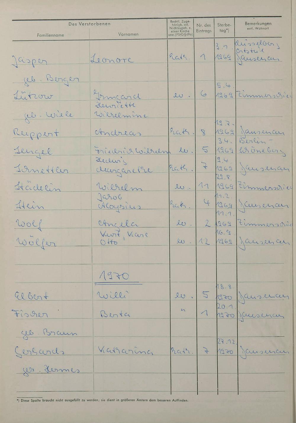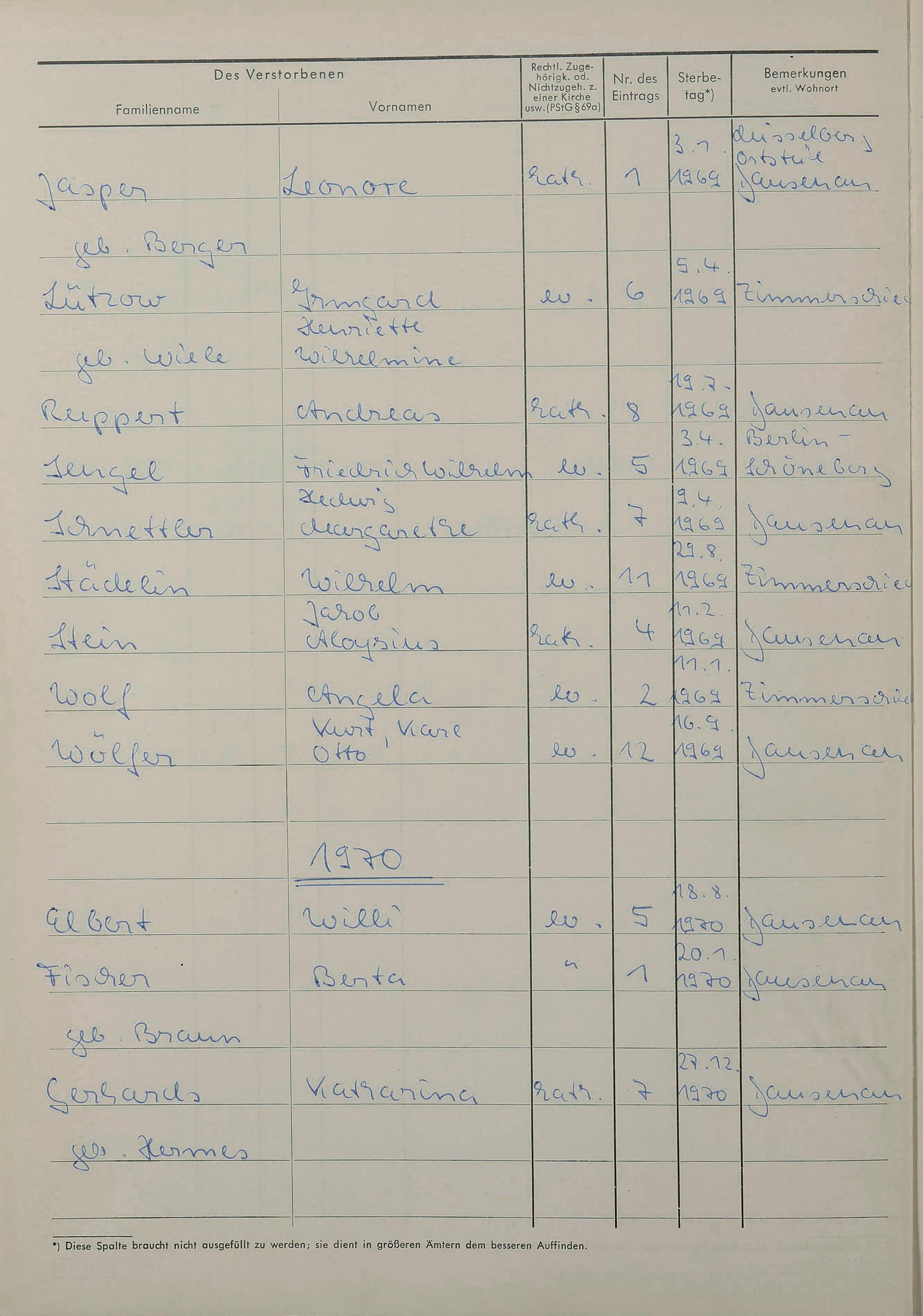 Sterberegister 1969