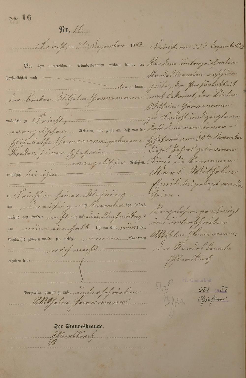 Geburtsregister 1883