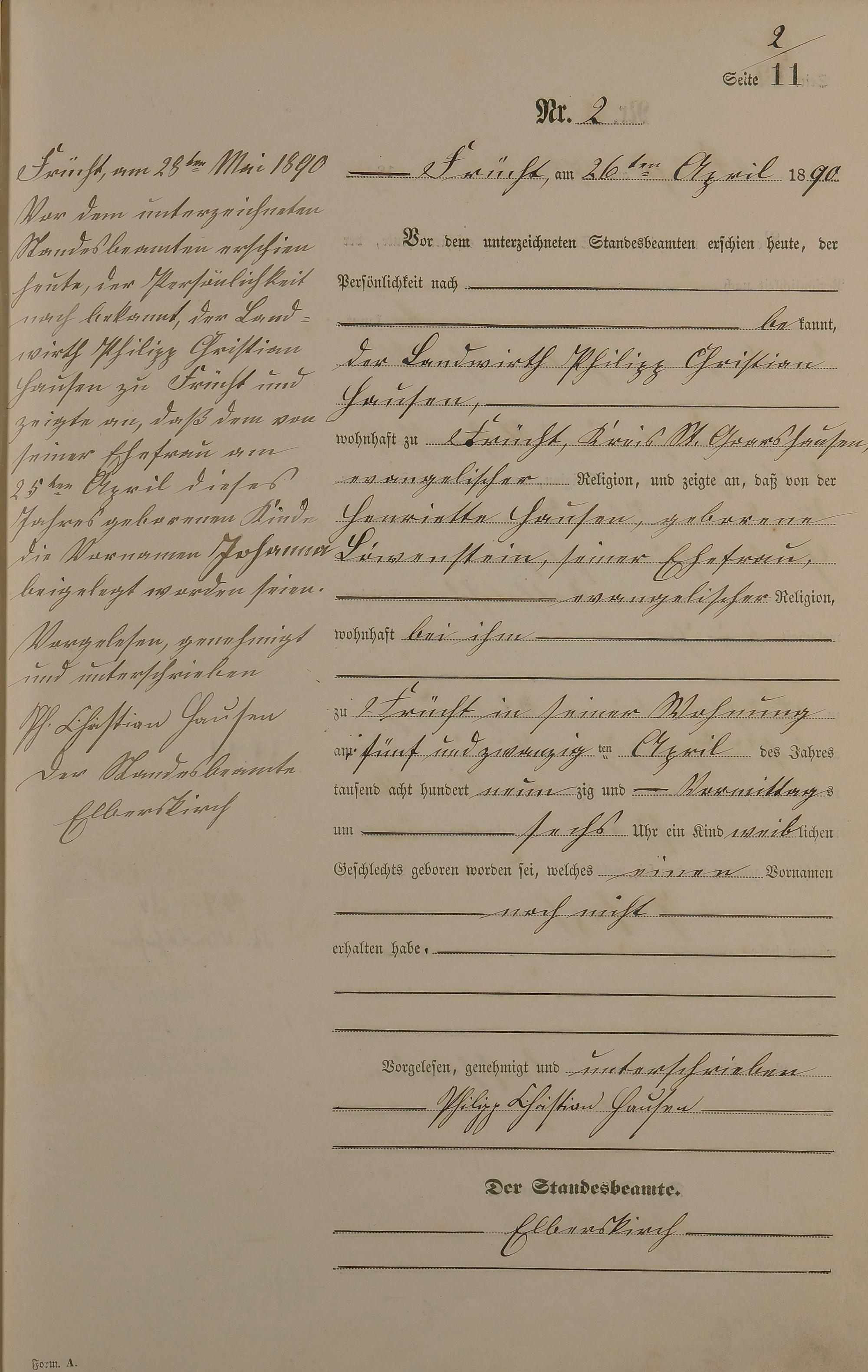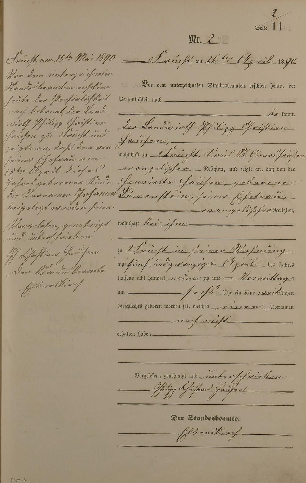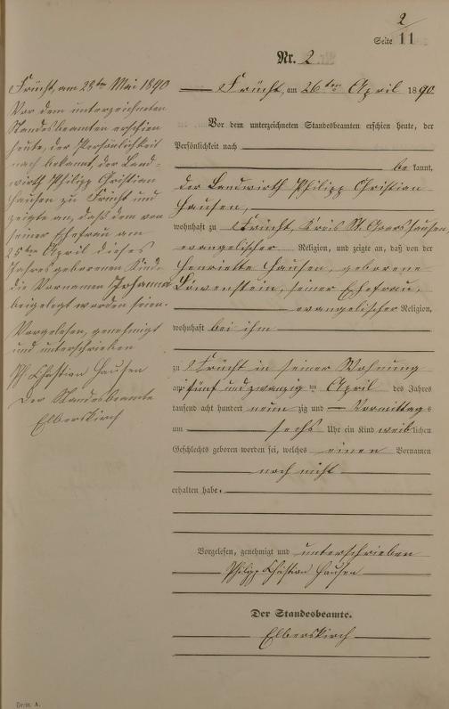 Geburtsregister 1890