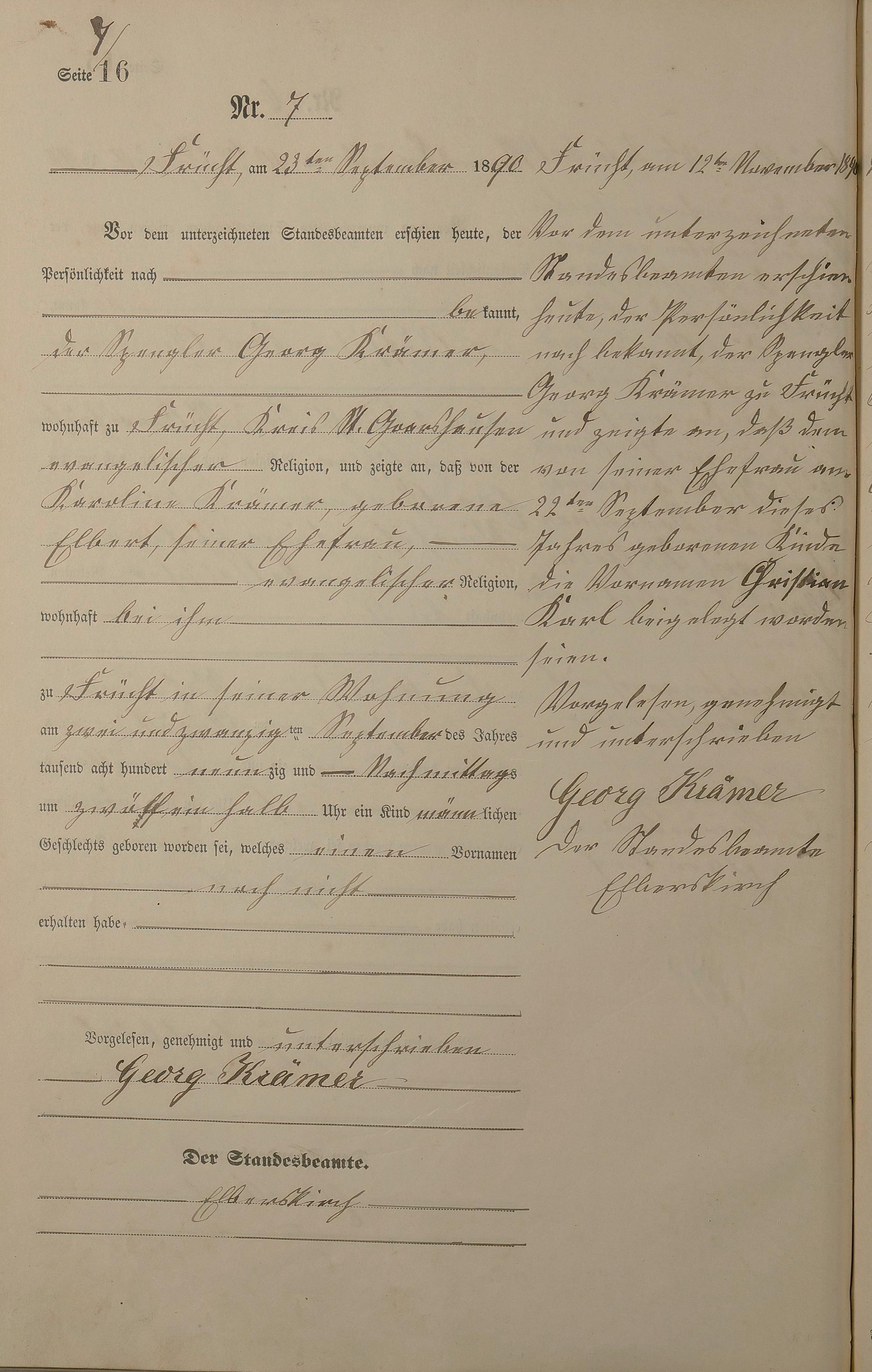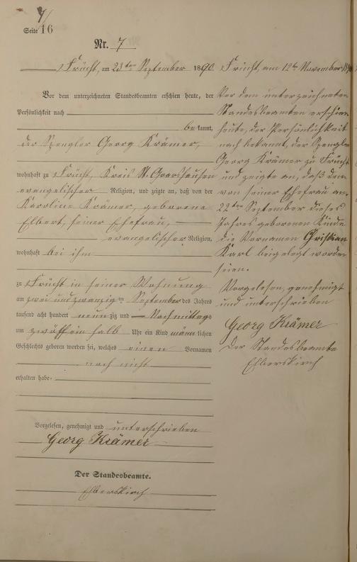 Geburtsregister 1890