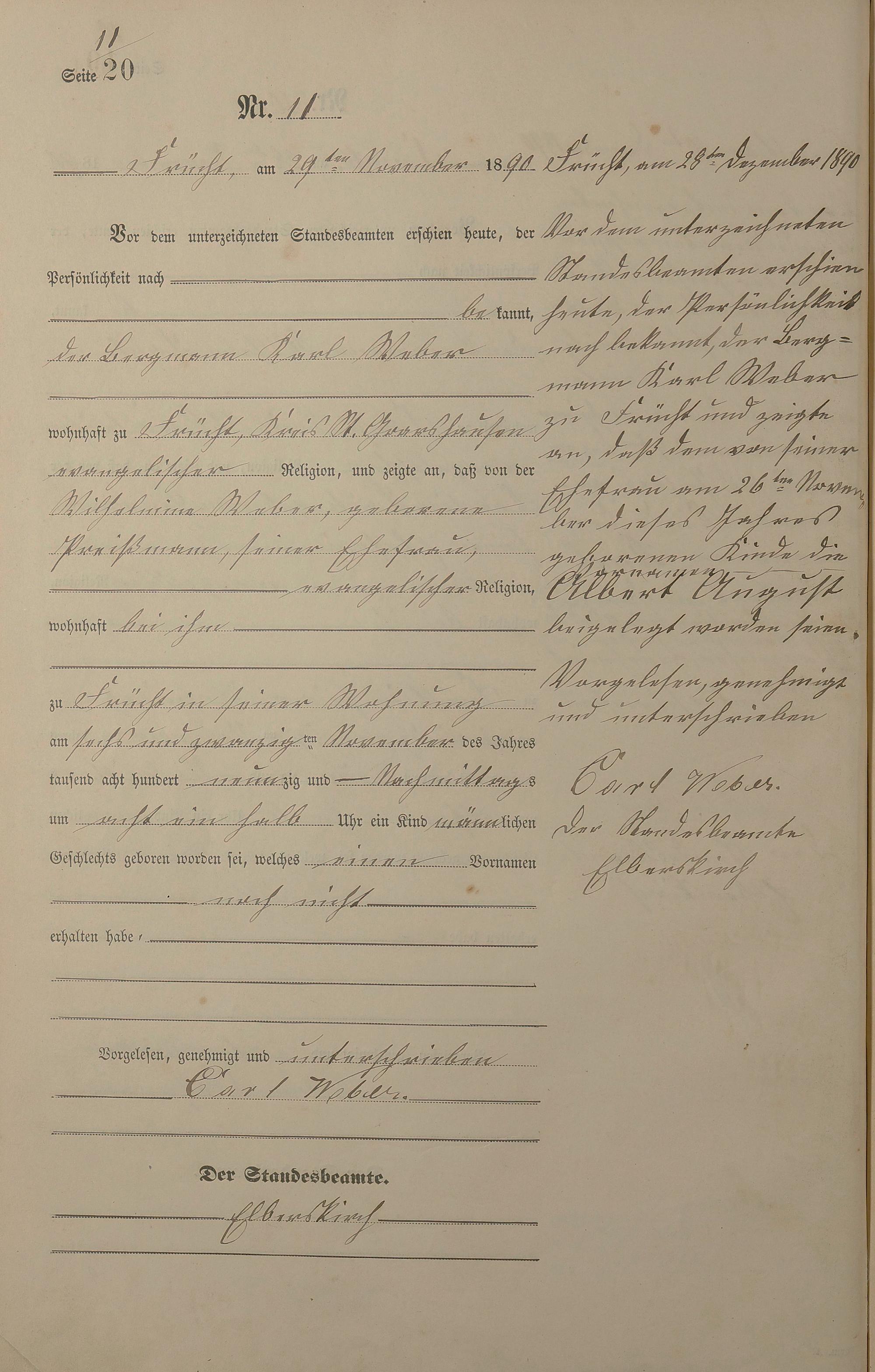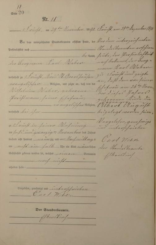 Geburtsregister 1890