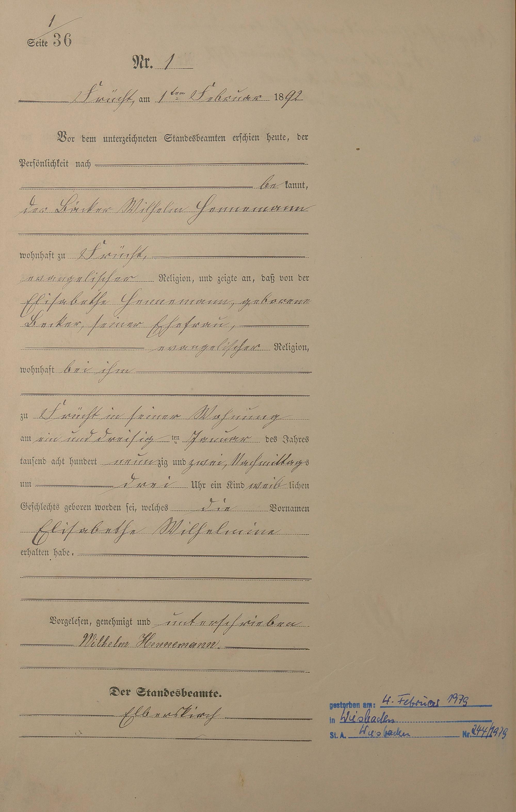 Geburtsregister 1892