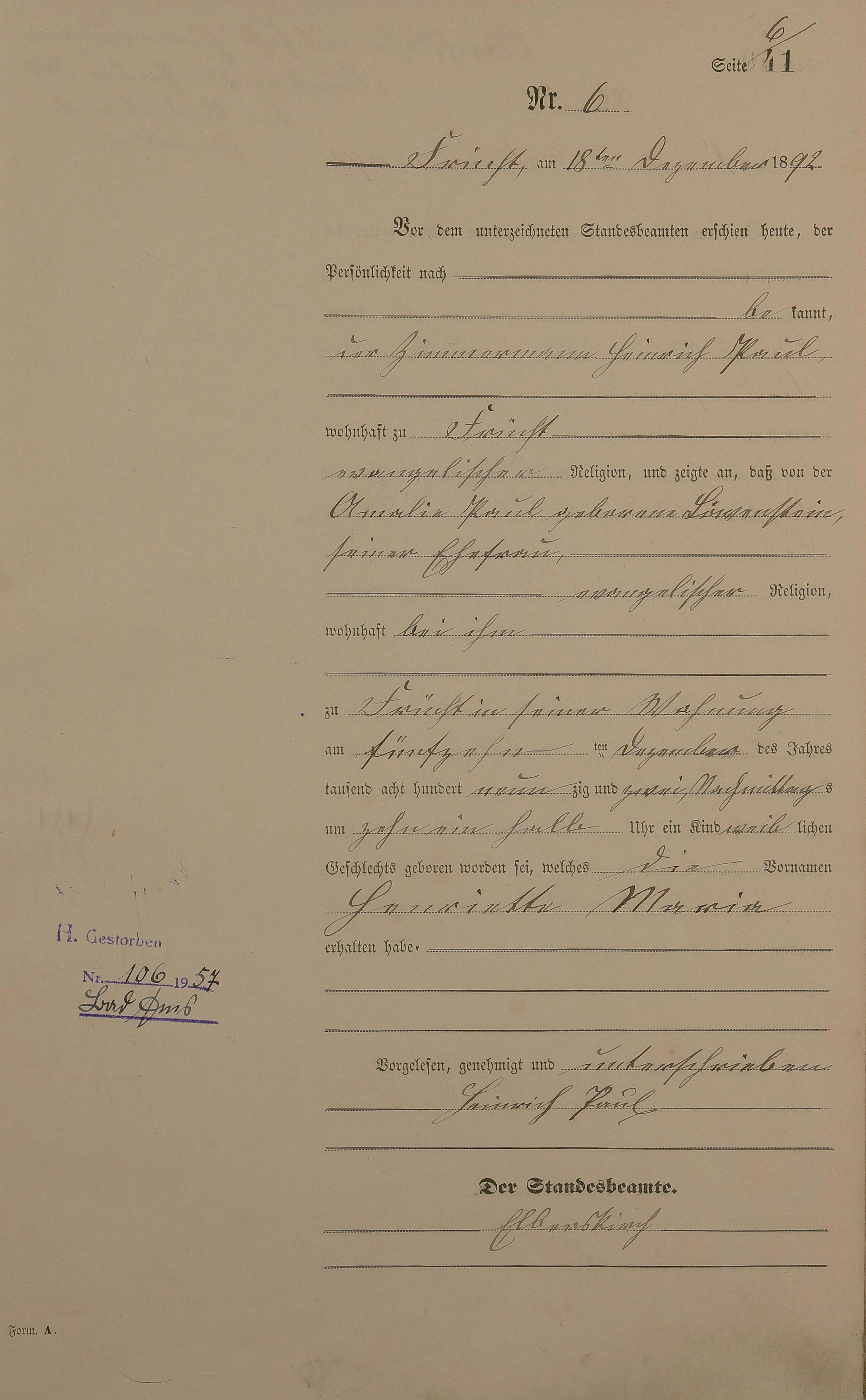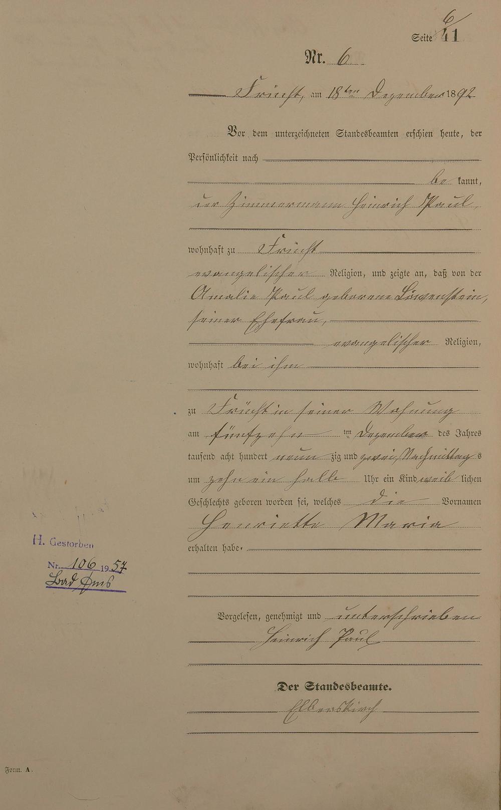 Geburtsregister 1892