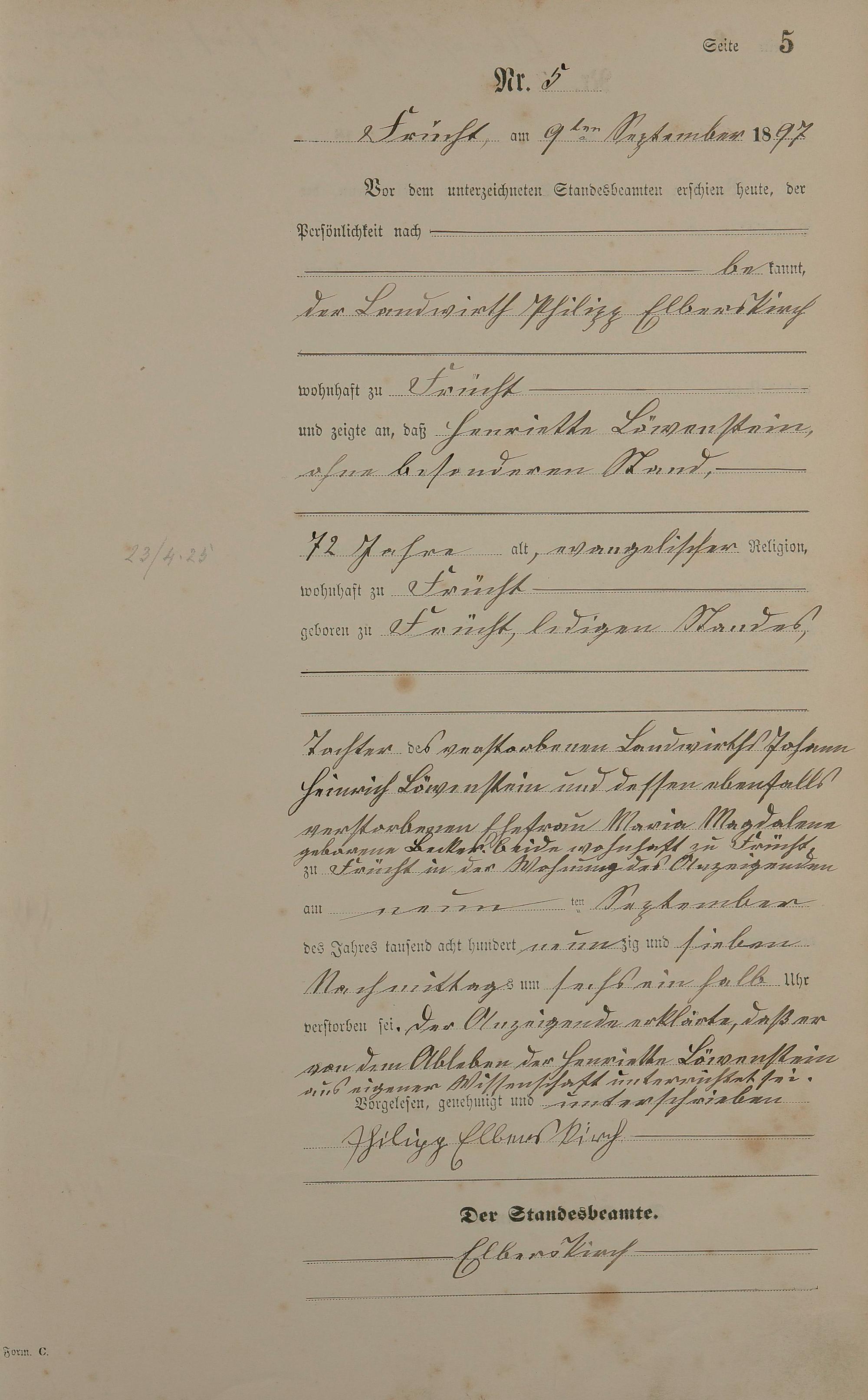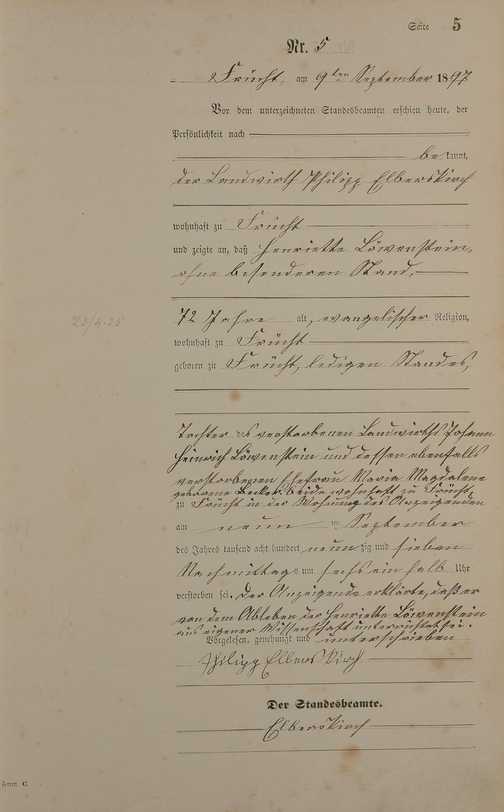 Sterberegister 1897