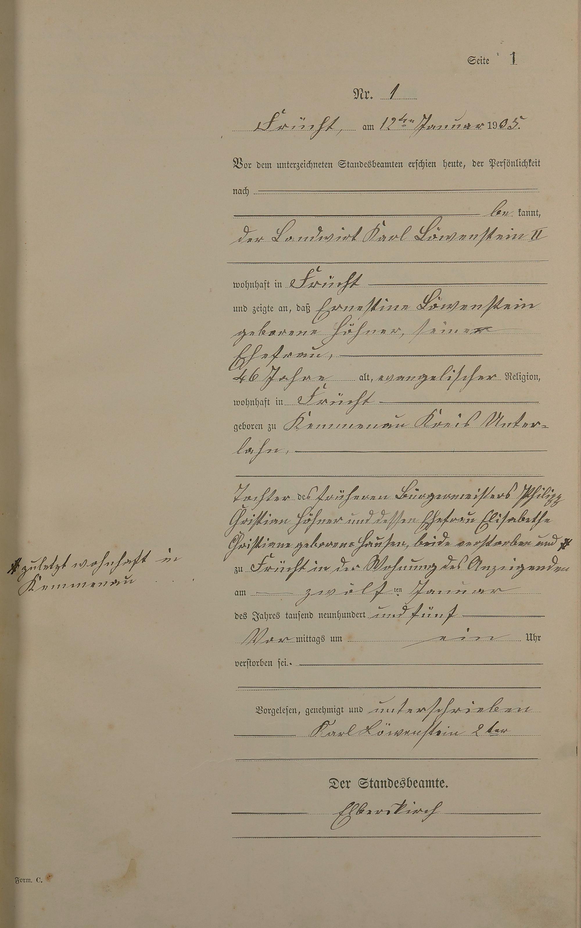 Sterberegister 1905