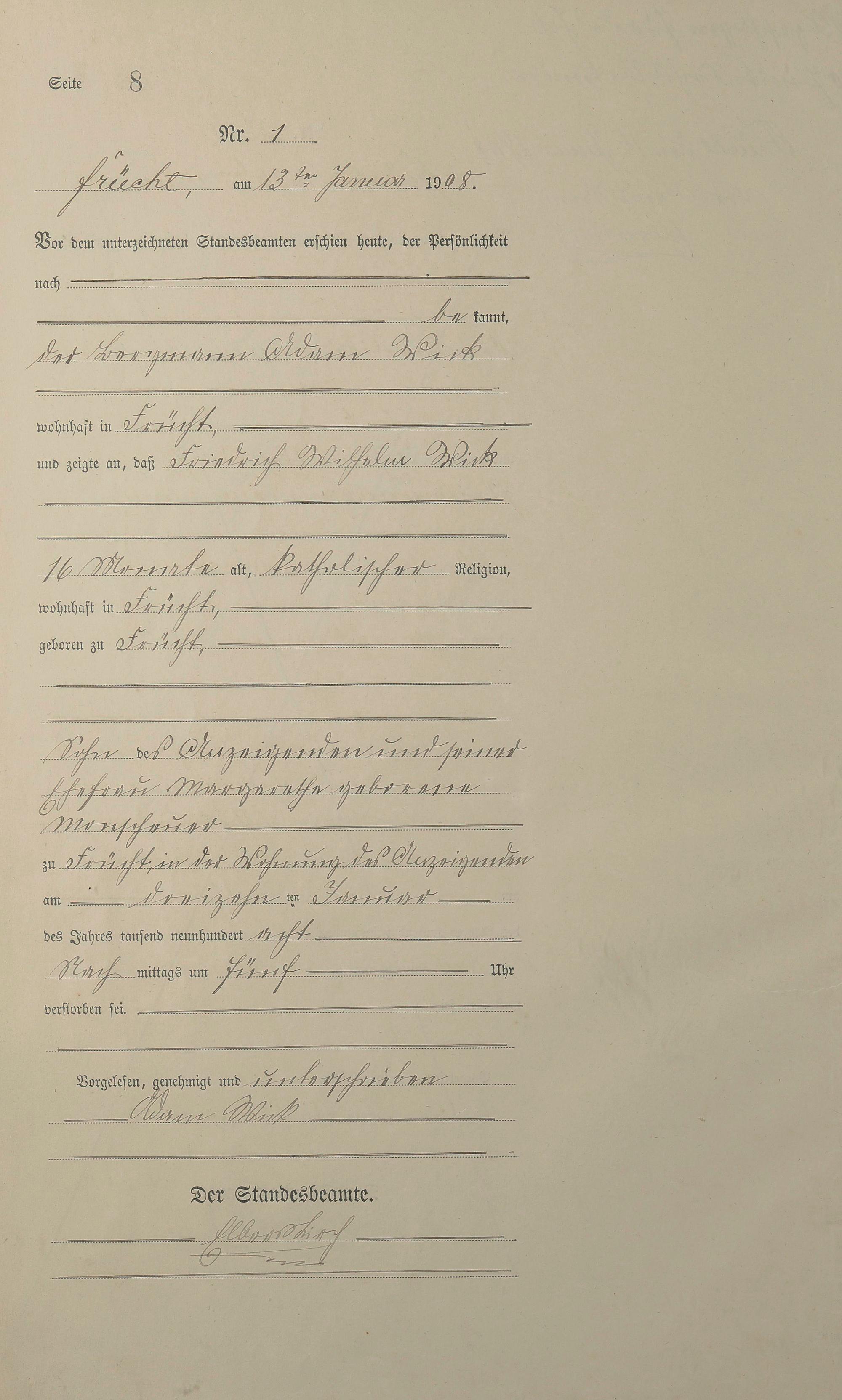 Sterberegister 1908