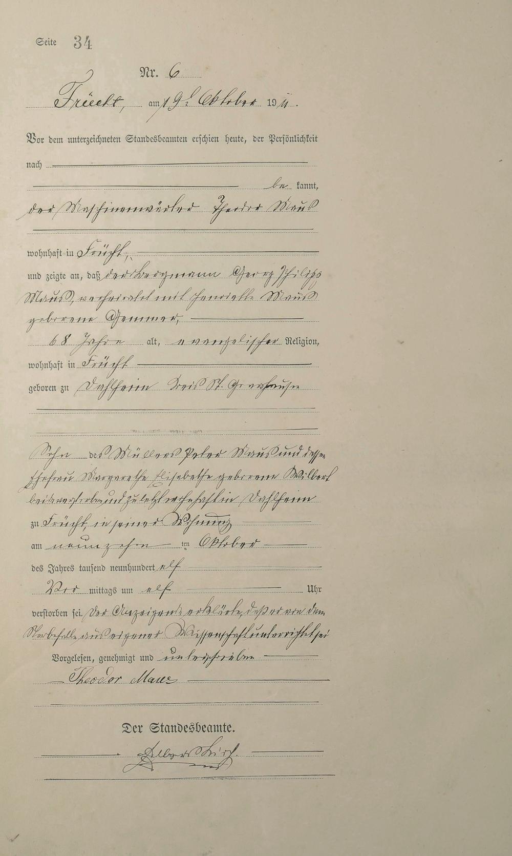 Sterberegister 1911