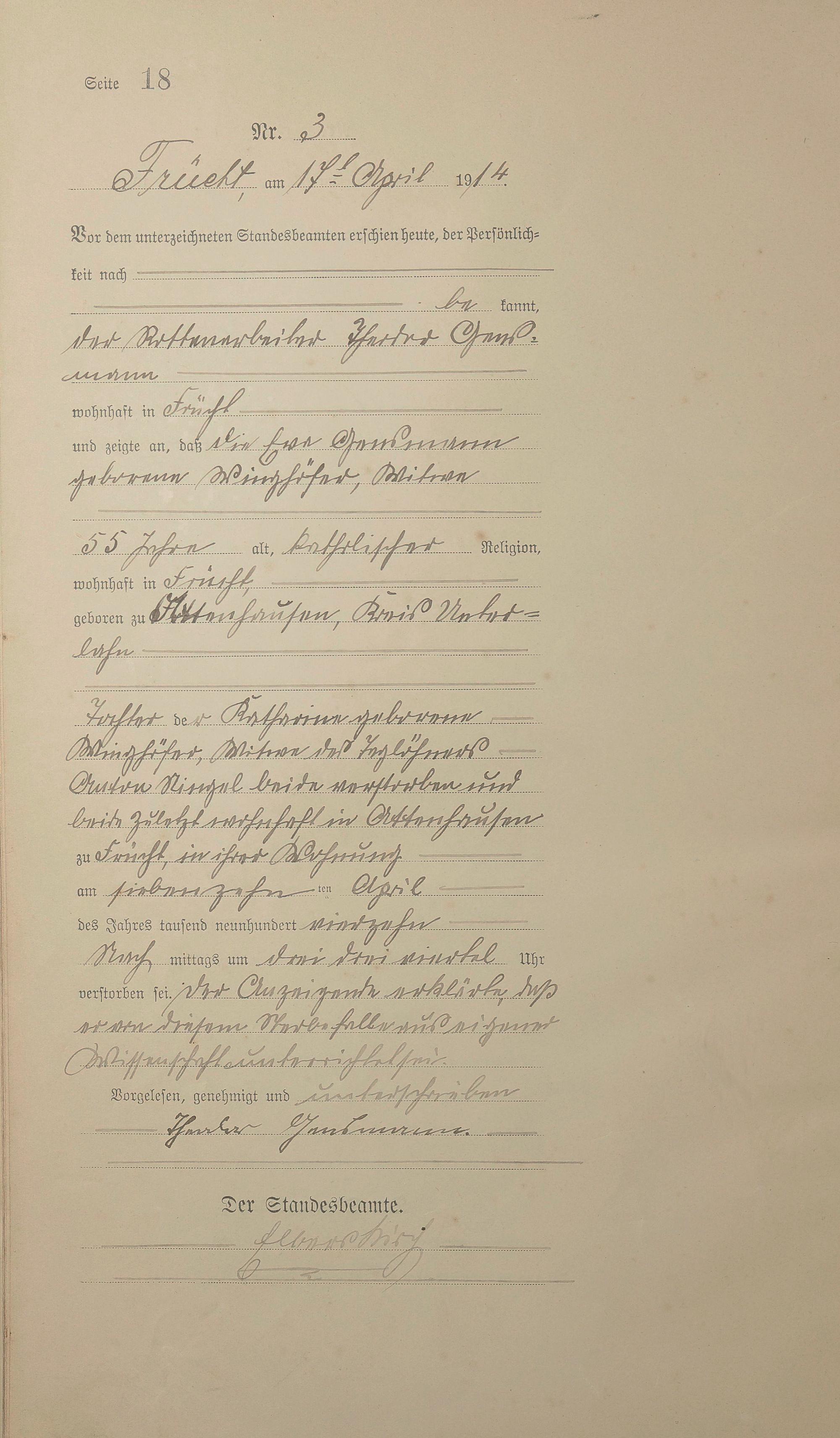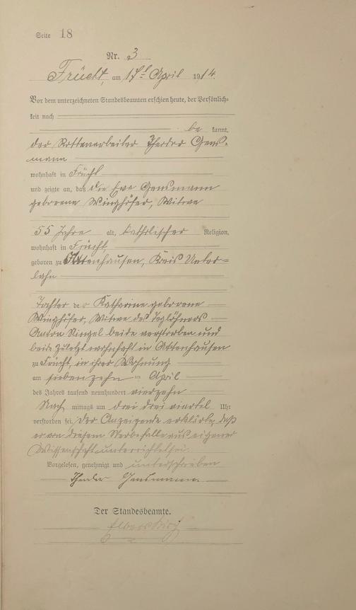 Sterberegister 1914