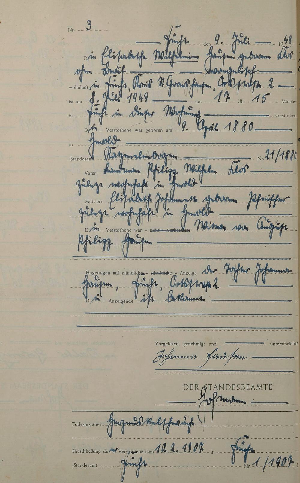 Sterberegister 1949
