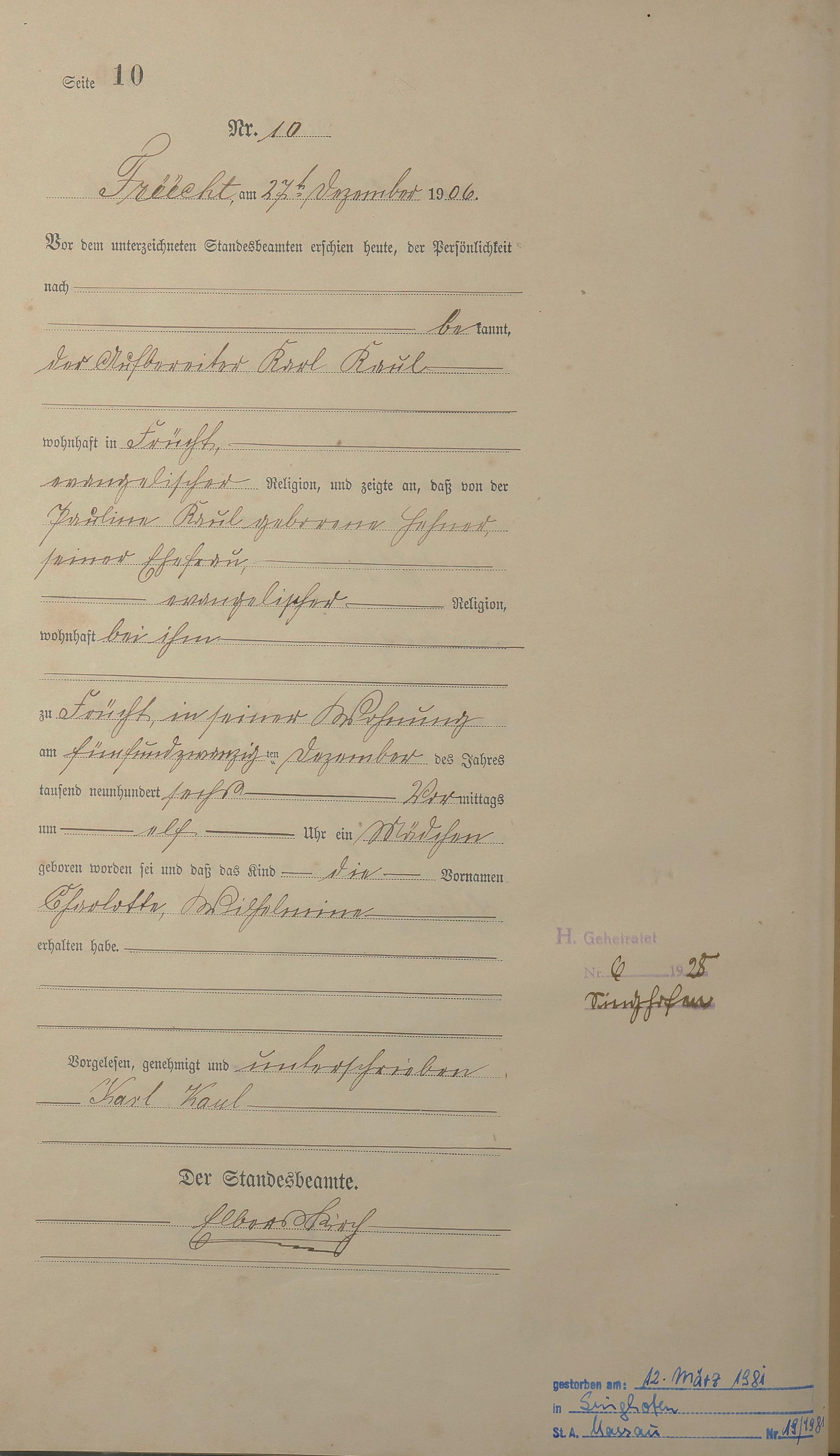 Geburtsregister 1906