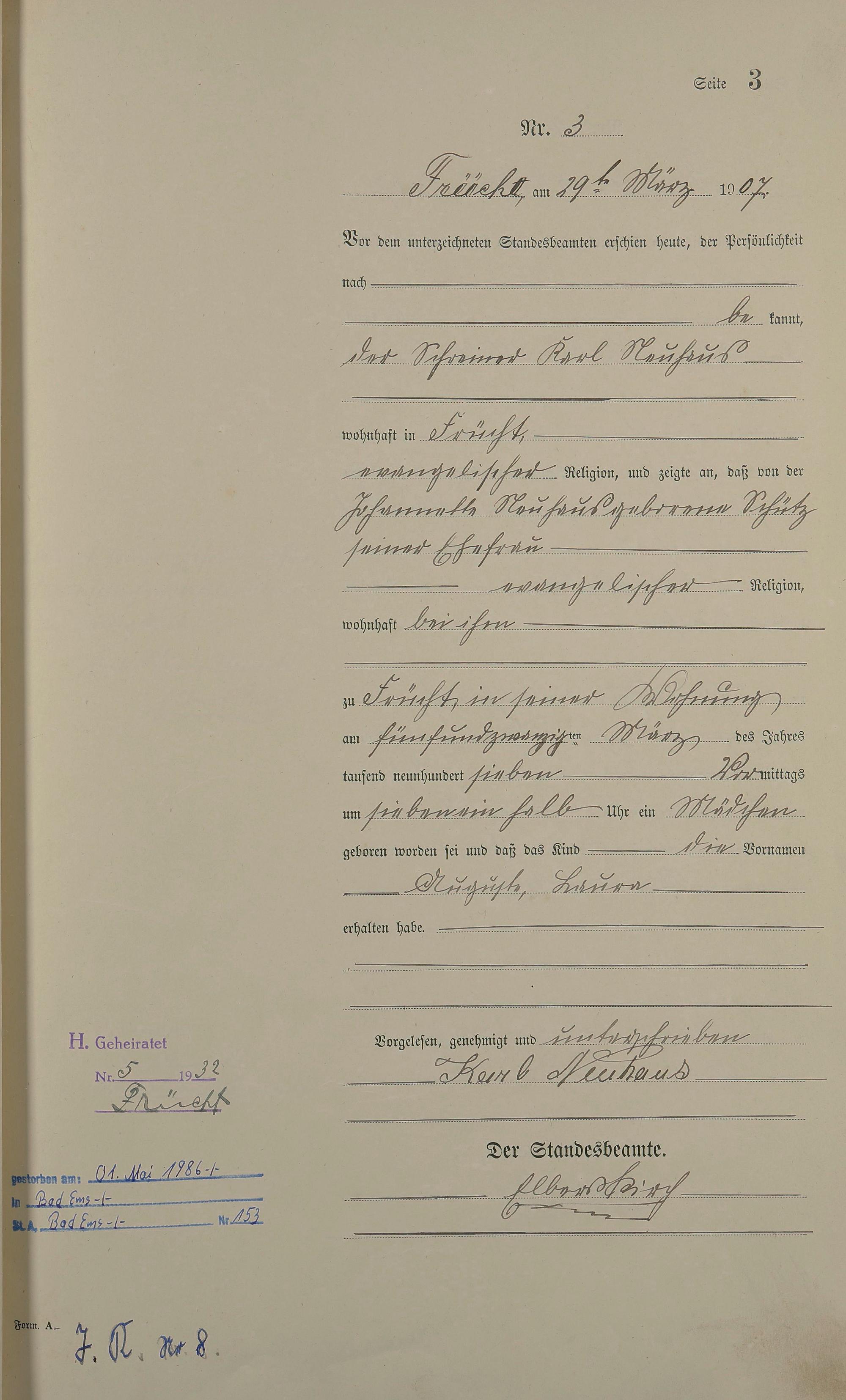 Geburtsregister 1907
