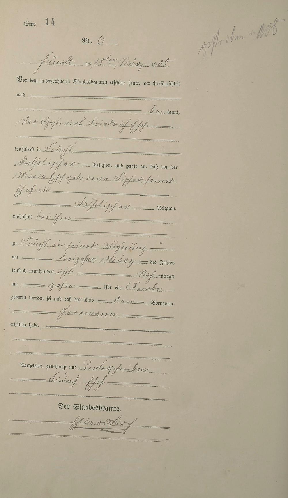 Geburtsregister 1908