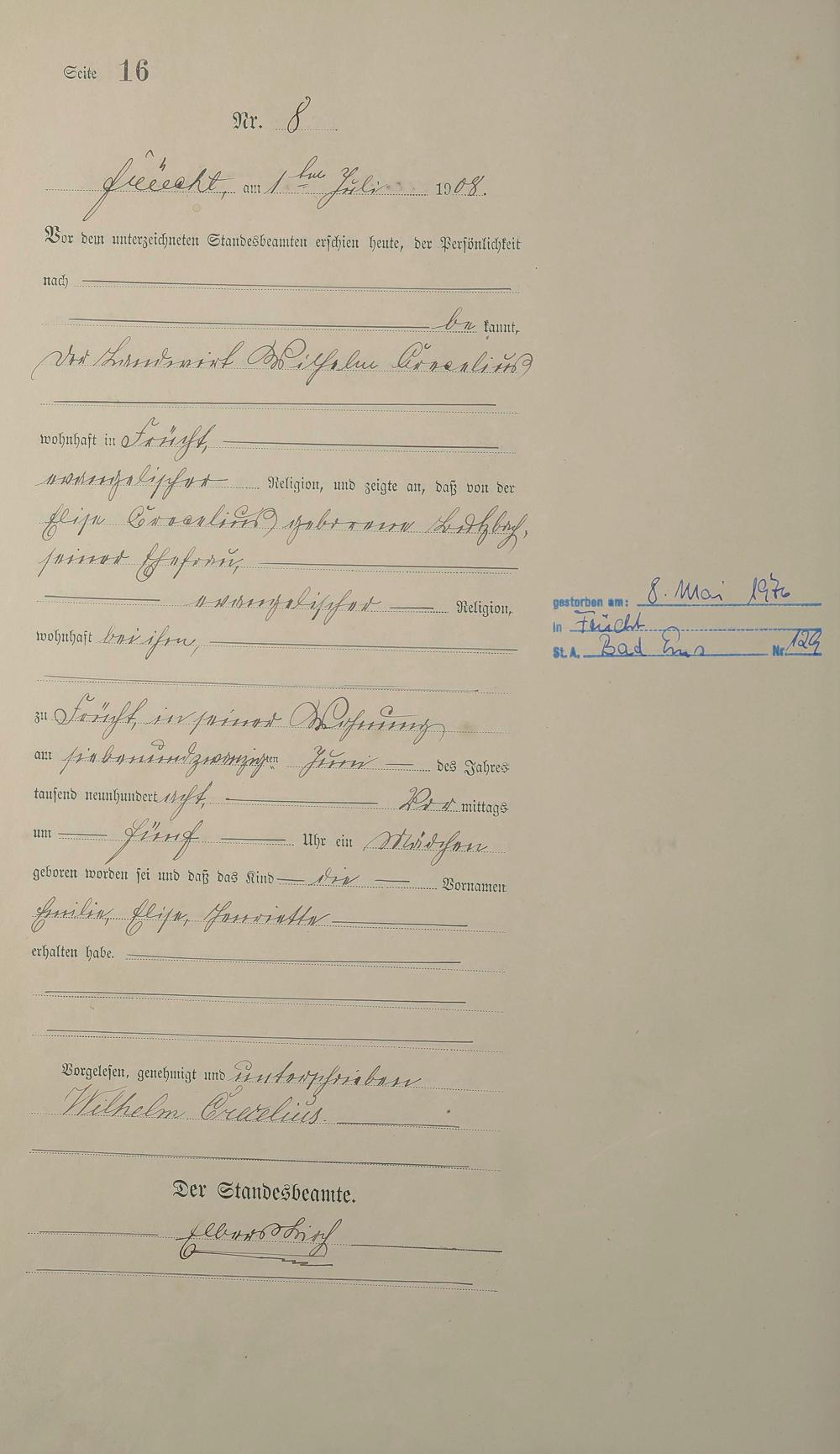 Geburtsregister 1908