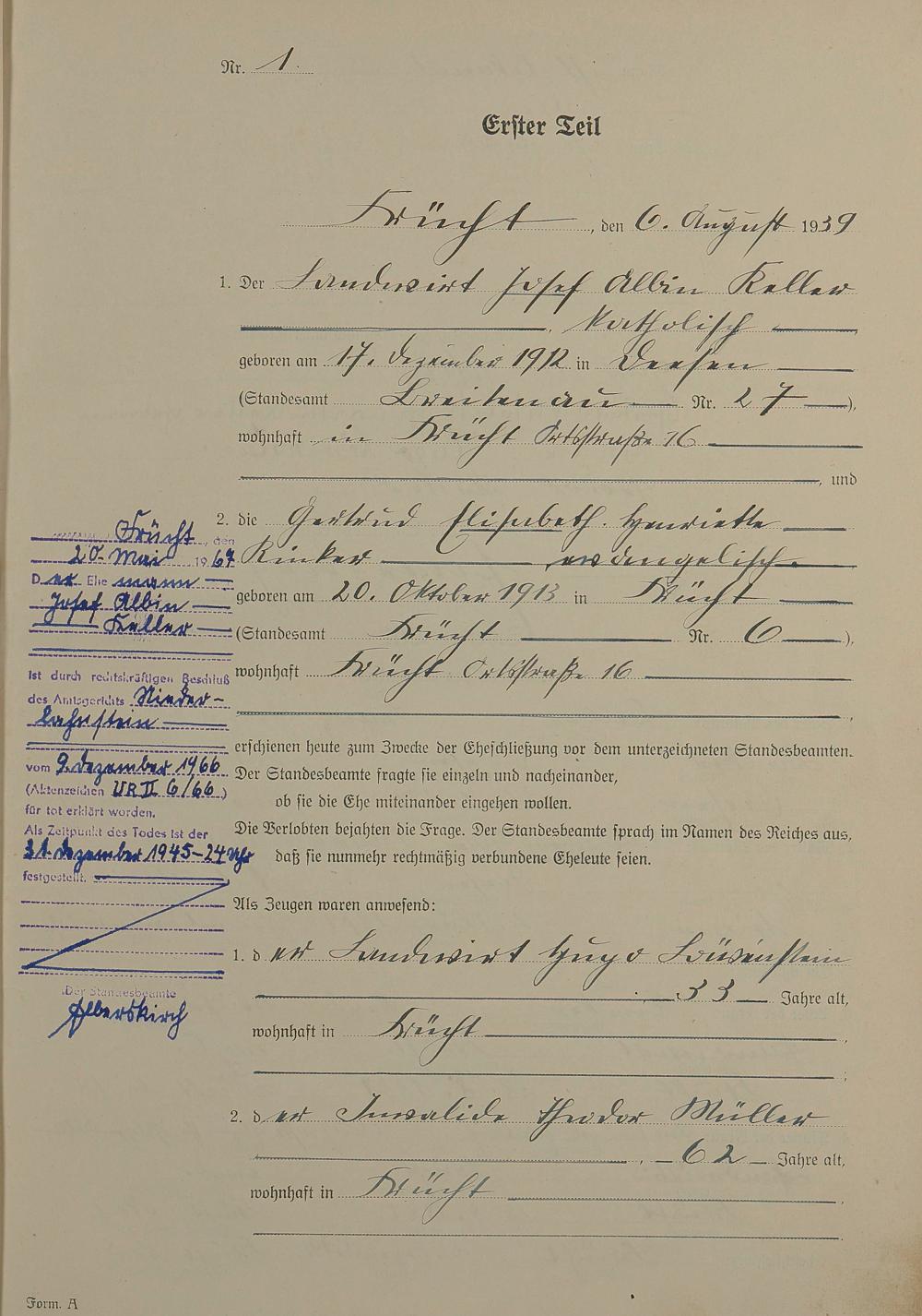 Heiratsregister 1939