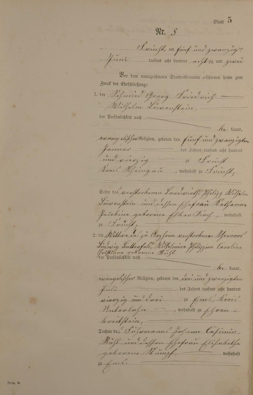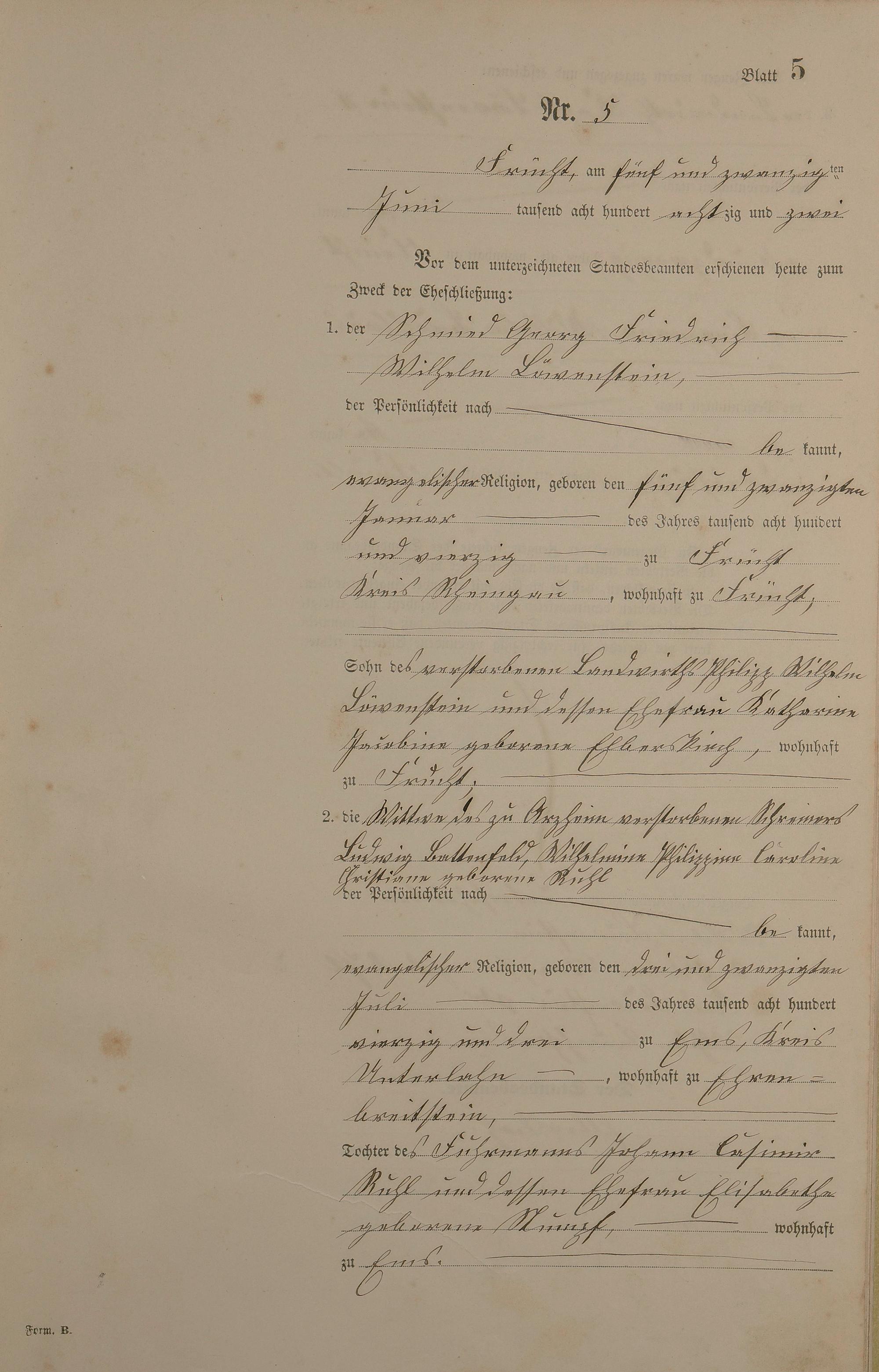 Heiratsregister 1882