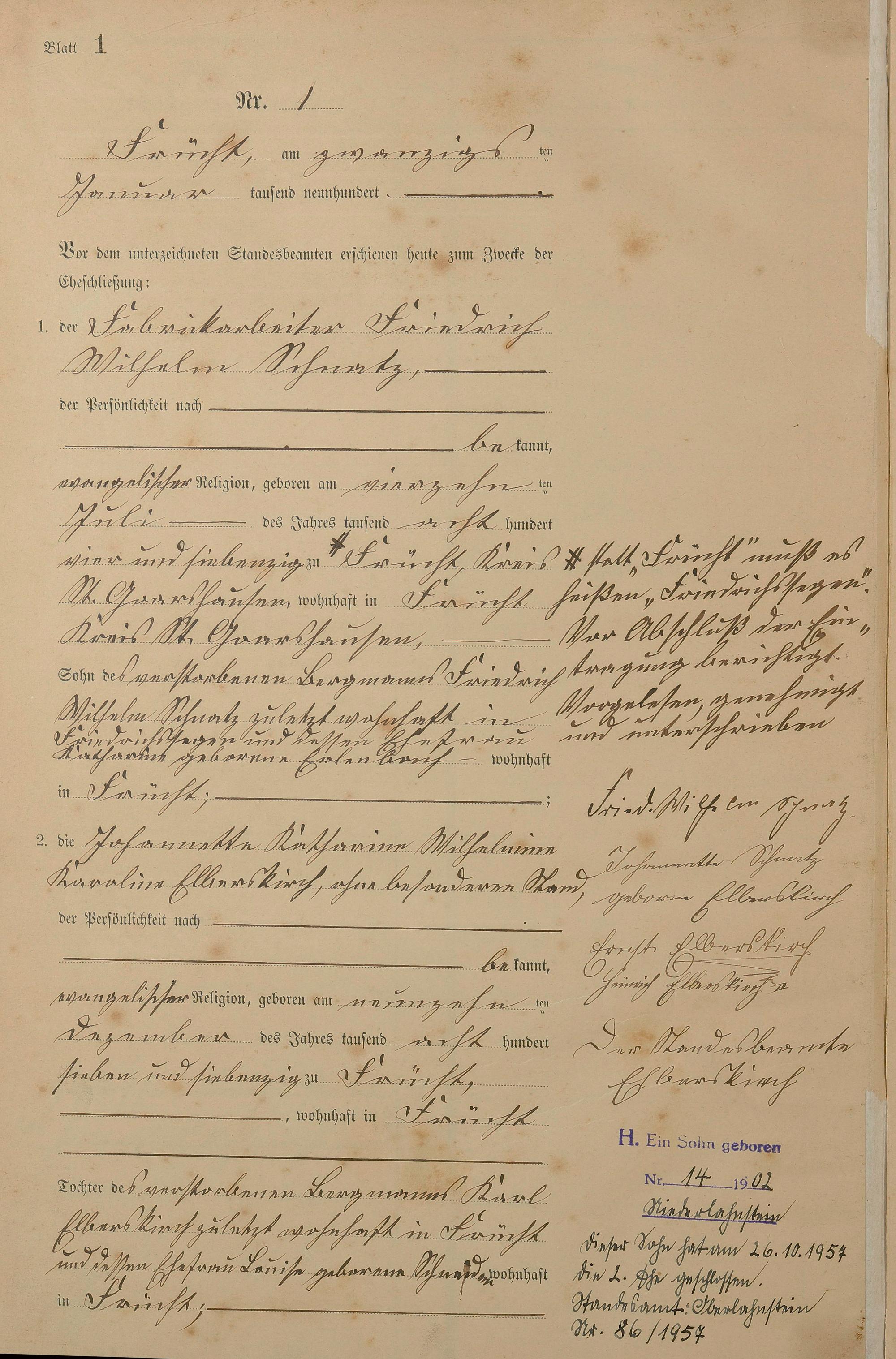 Heiratsregister 1900