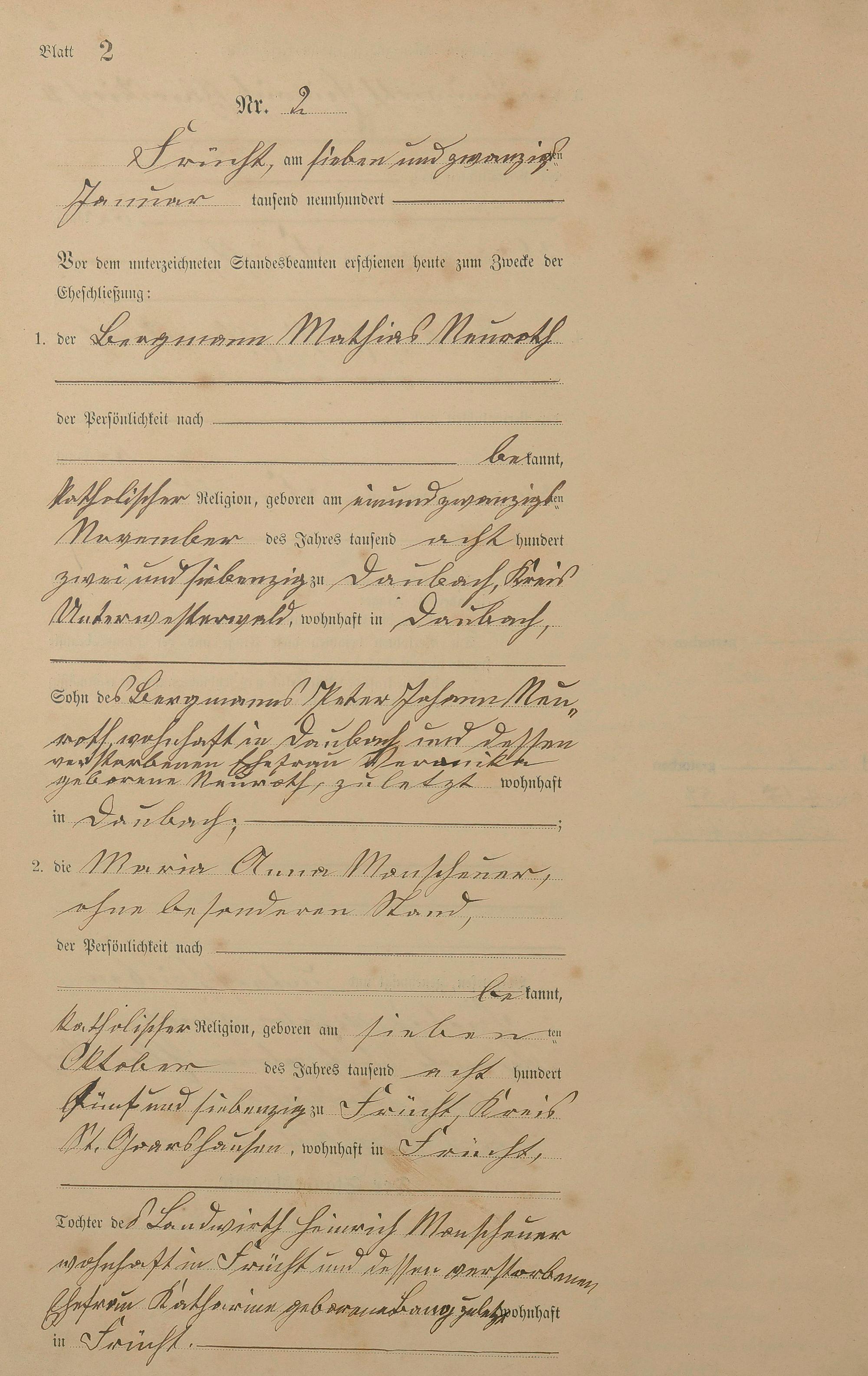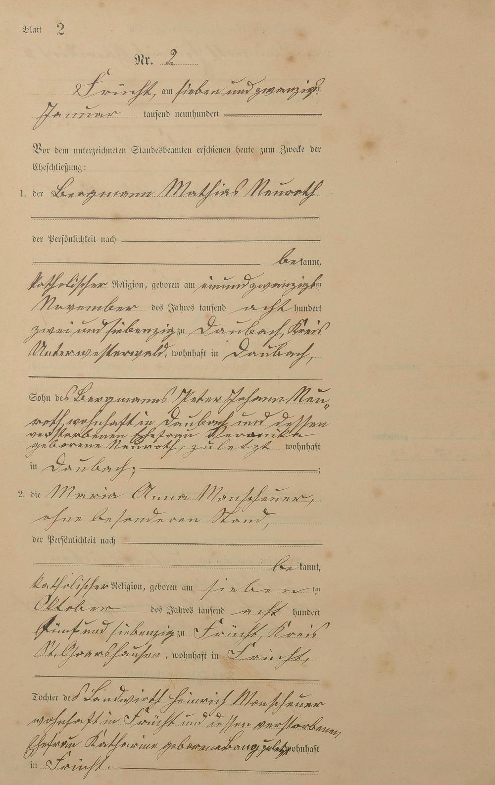 Heiratsregister 1900