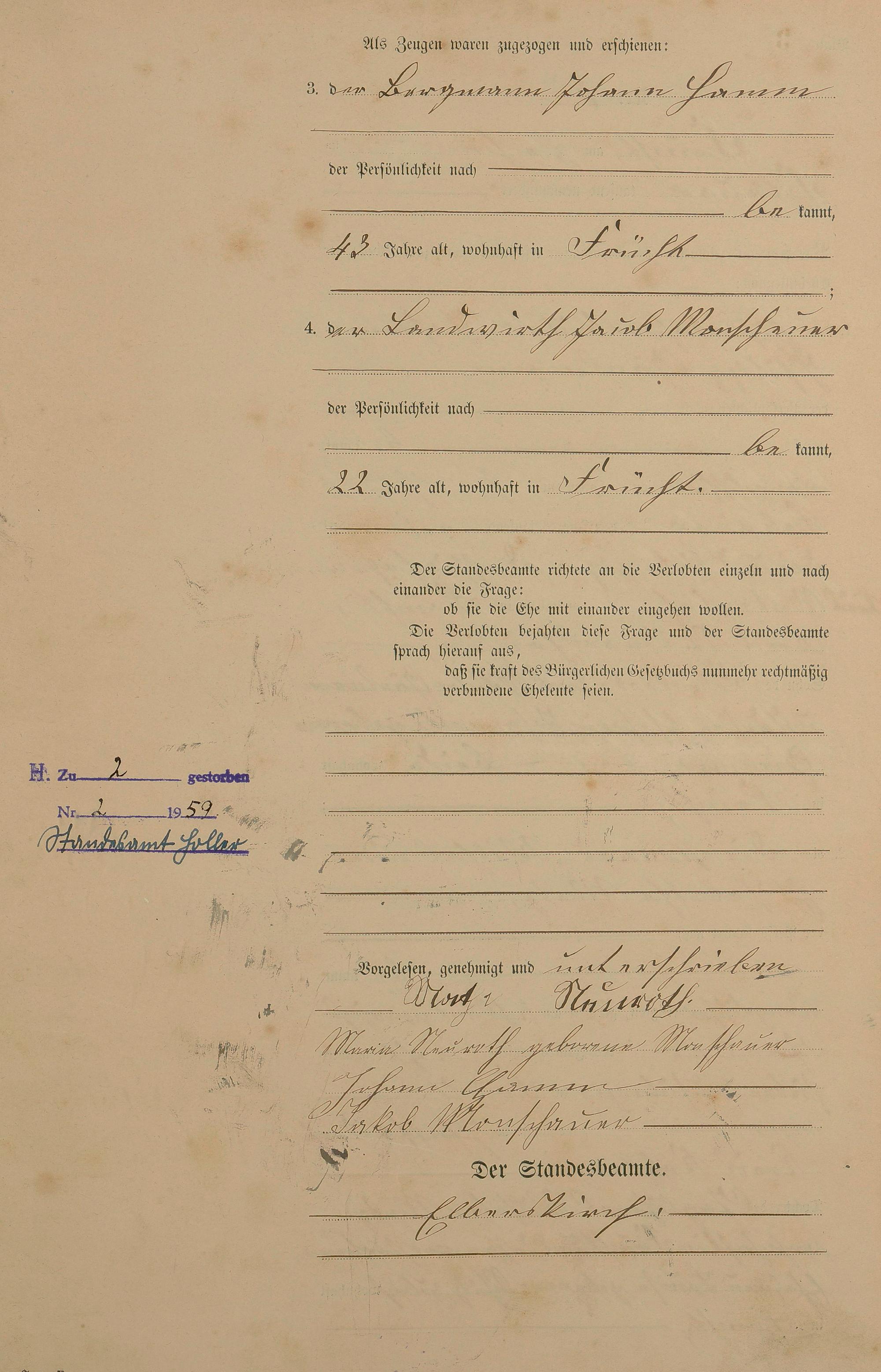 Heiratsregister 1900