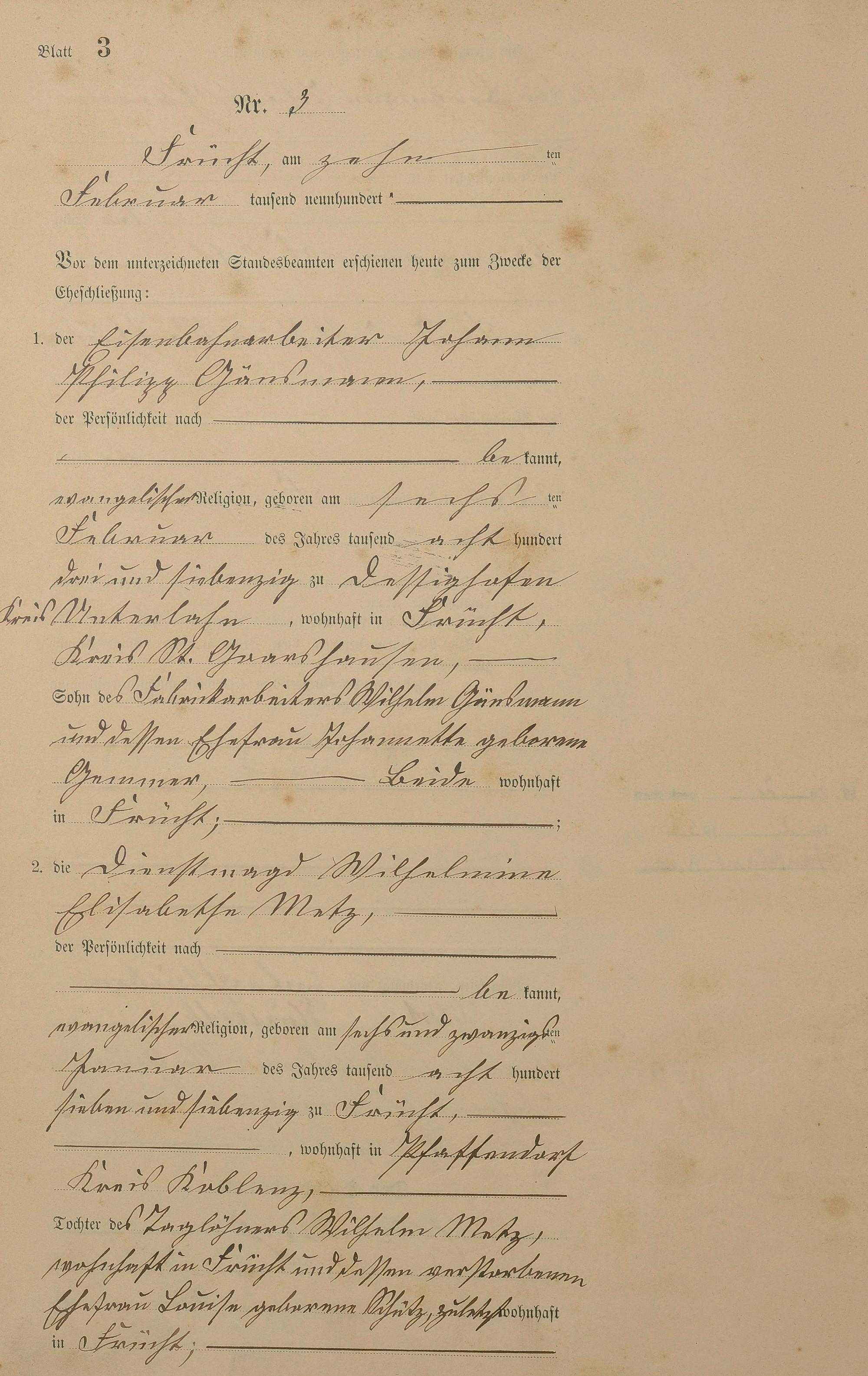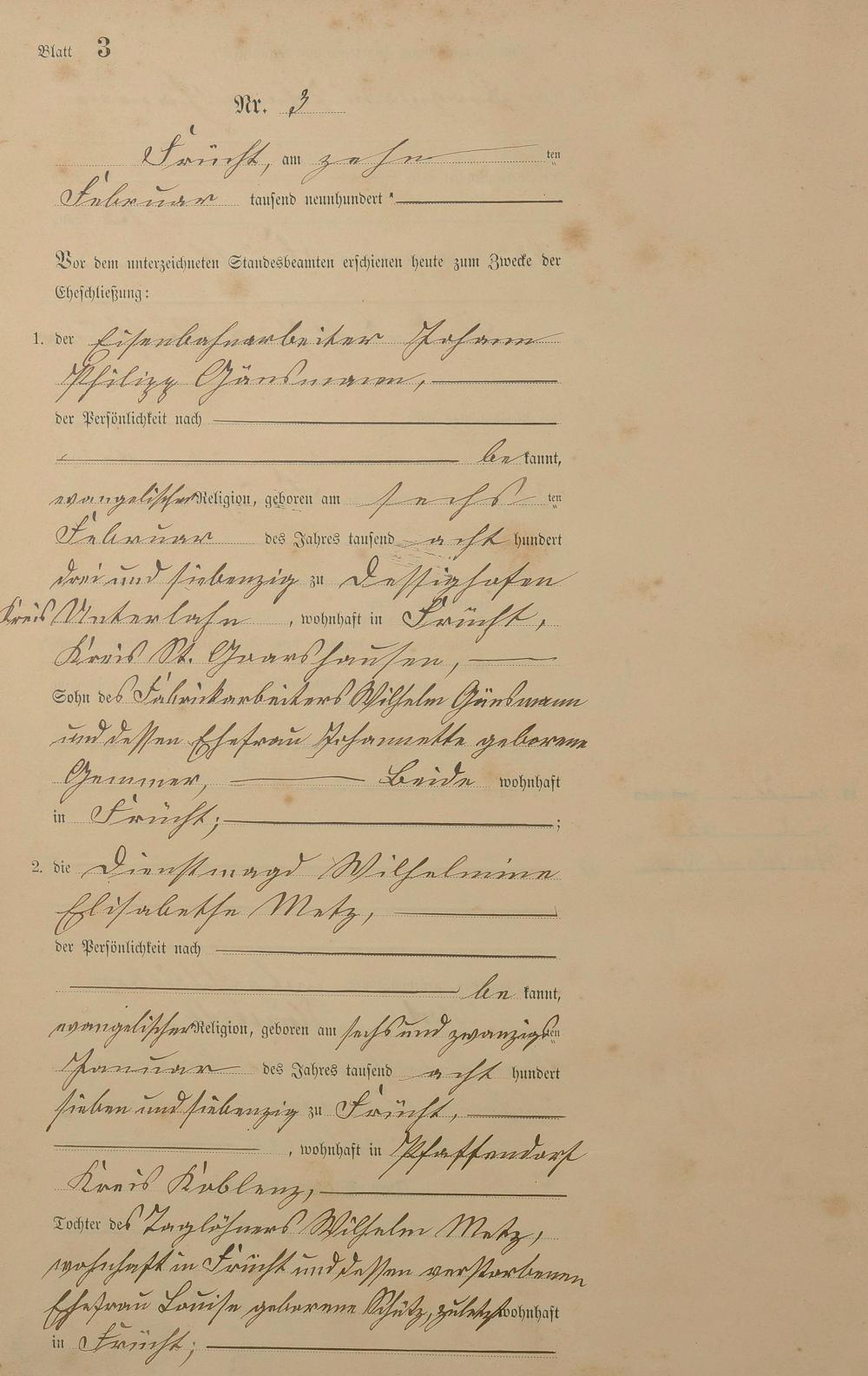 Heiratsregister 1900