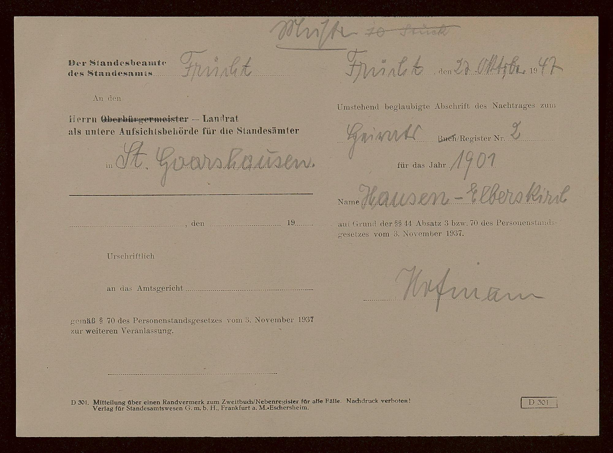 Heiratsregister 1901