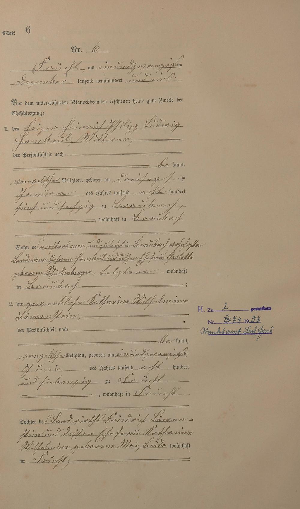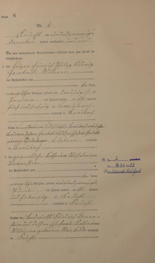 Heiratsregister 1901