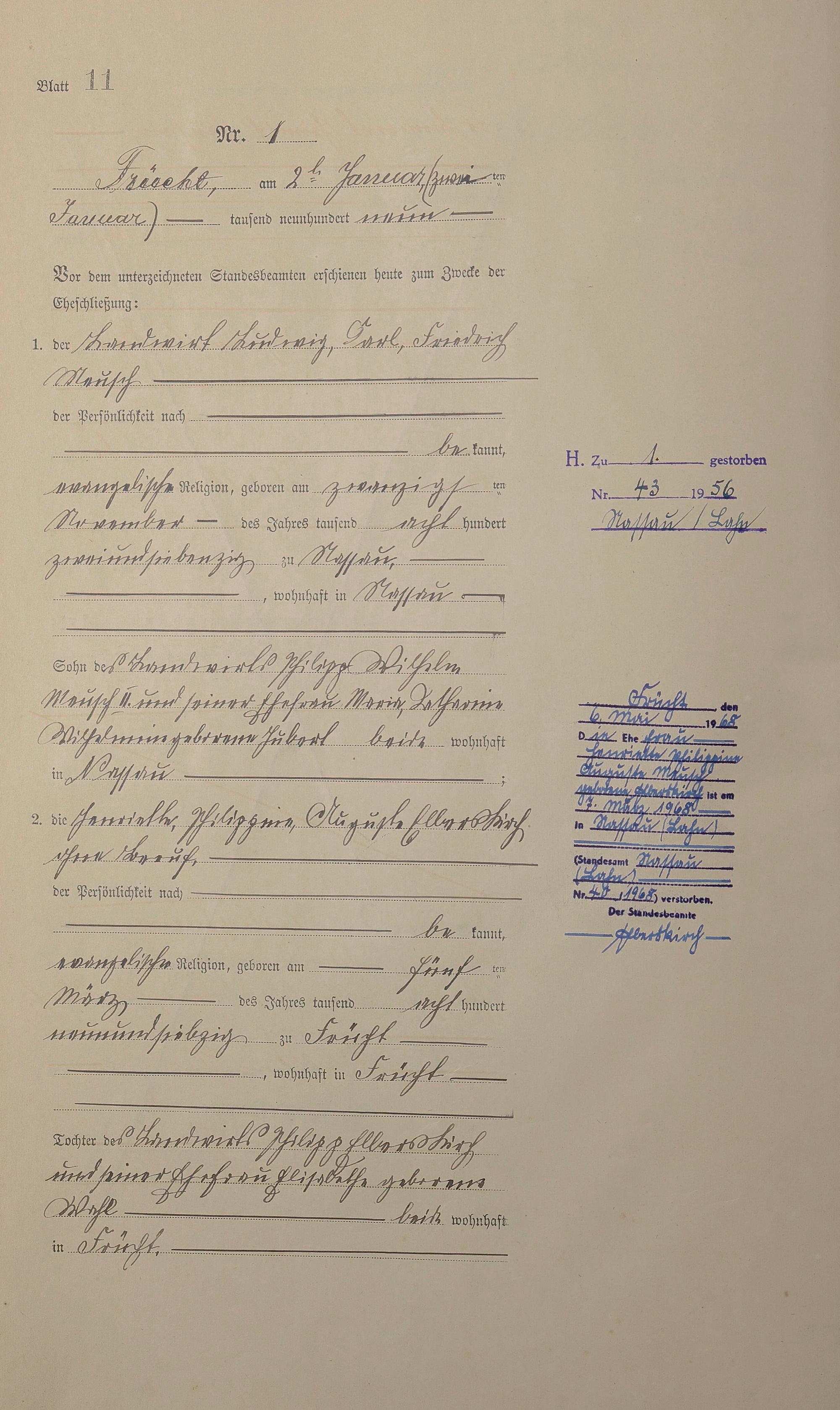 Heiratsregister 1909