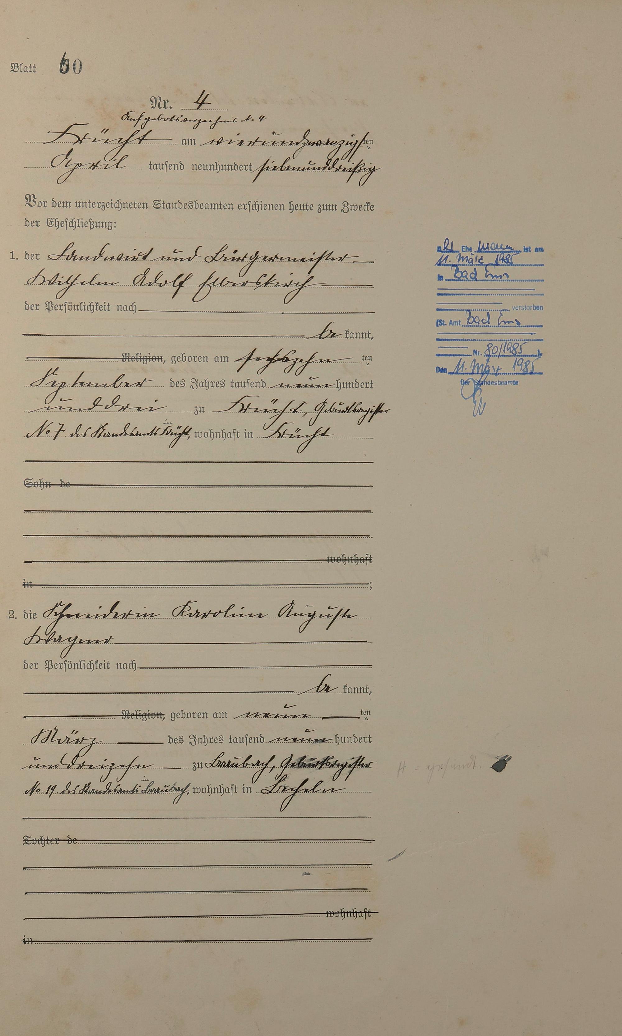 Heiratsregister 1937