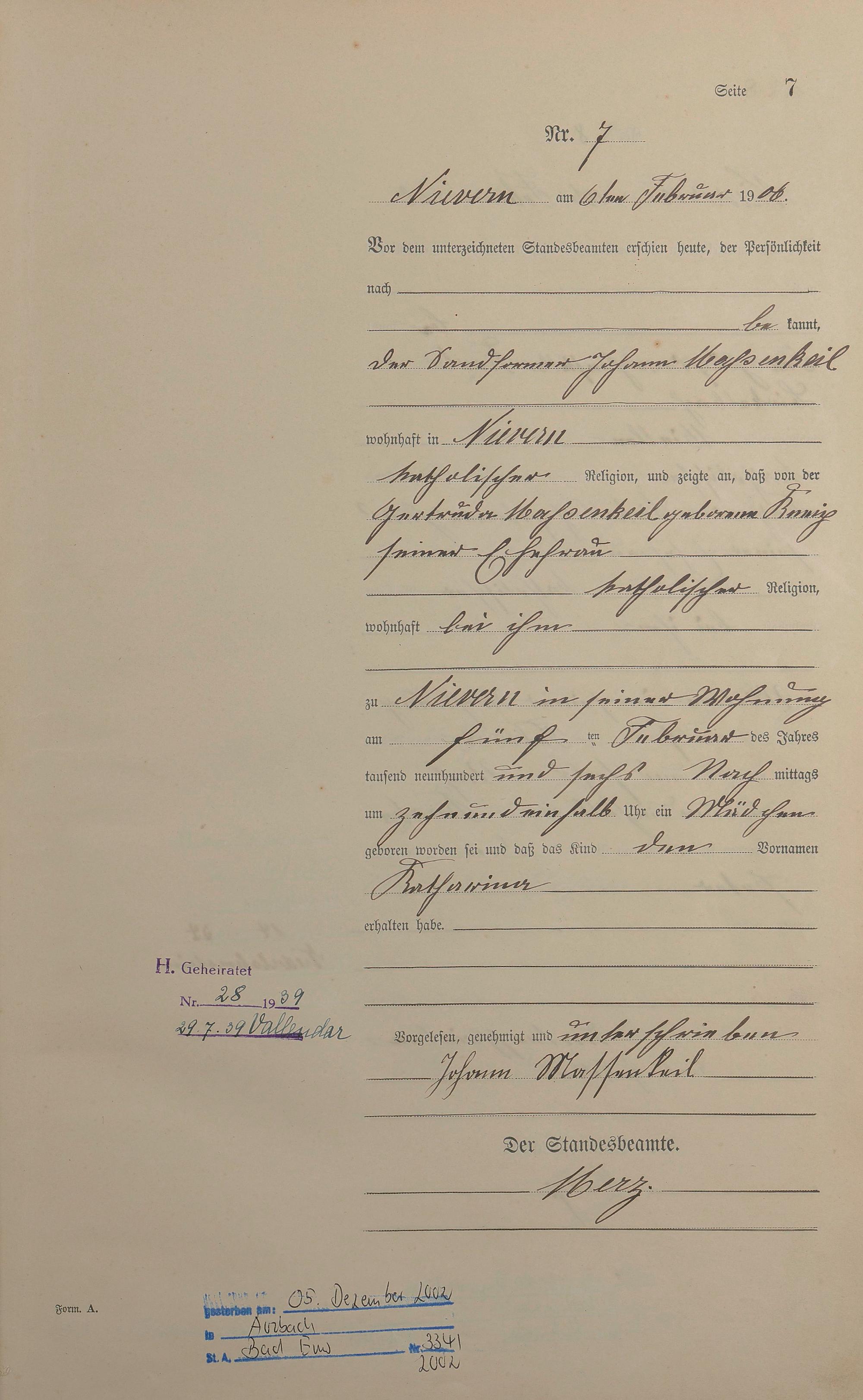 Geburtsregister 1906