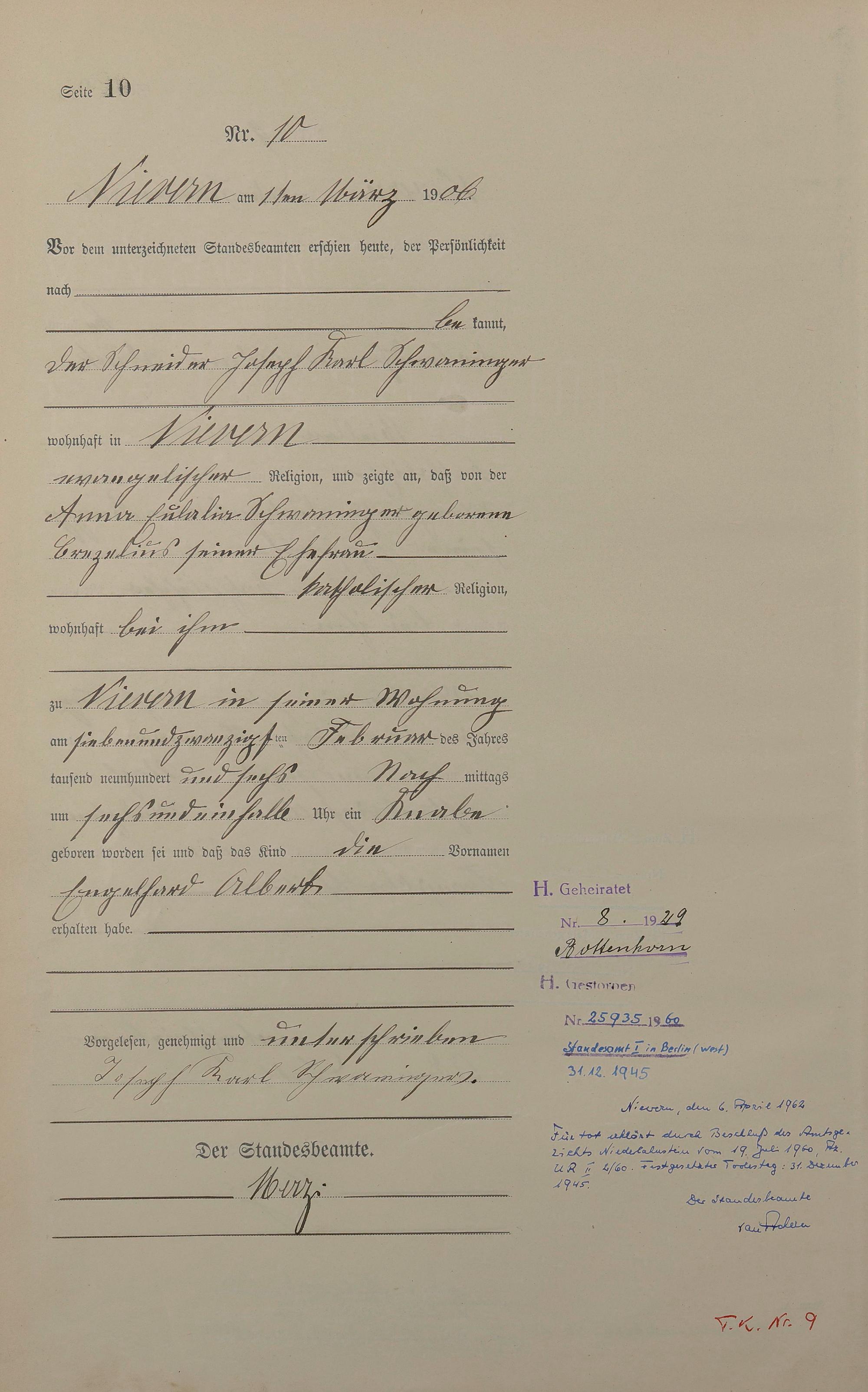 Geburtsregister 1906