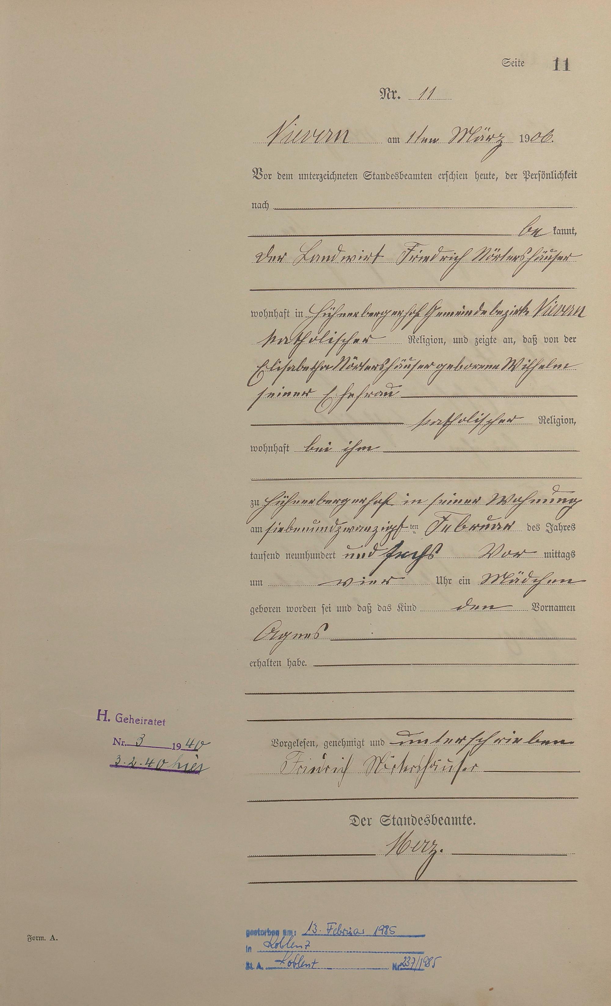 Geburtsregister 1906