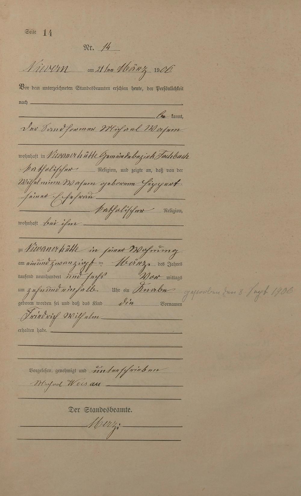 Geburtsregister 1906